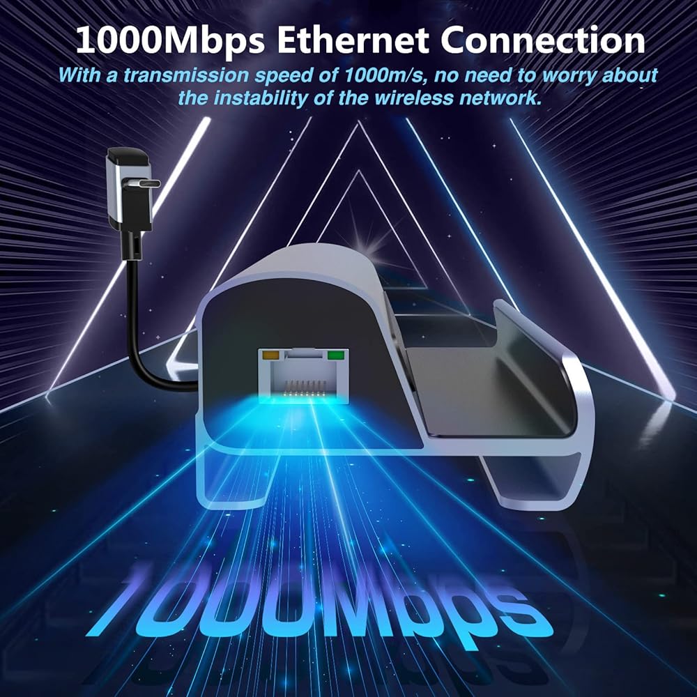 Stable networking and fast data transfer The Steam Dock has Gigabit Ethernet, supporting speeds of up to 1Gbps, and three USB 3.0 ports (speeds of up to 5Gbps), transferring files in seconds. Supports connections to multi-player game controllers, external hard drives, mice, keyboards and more.