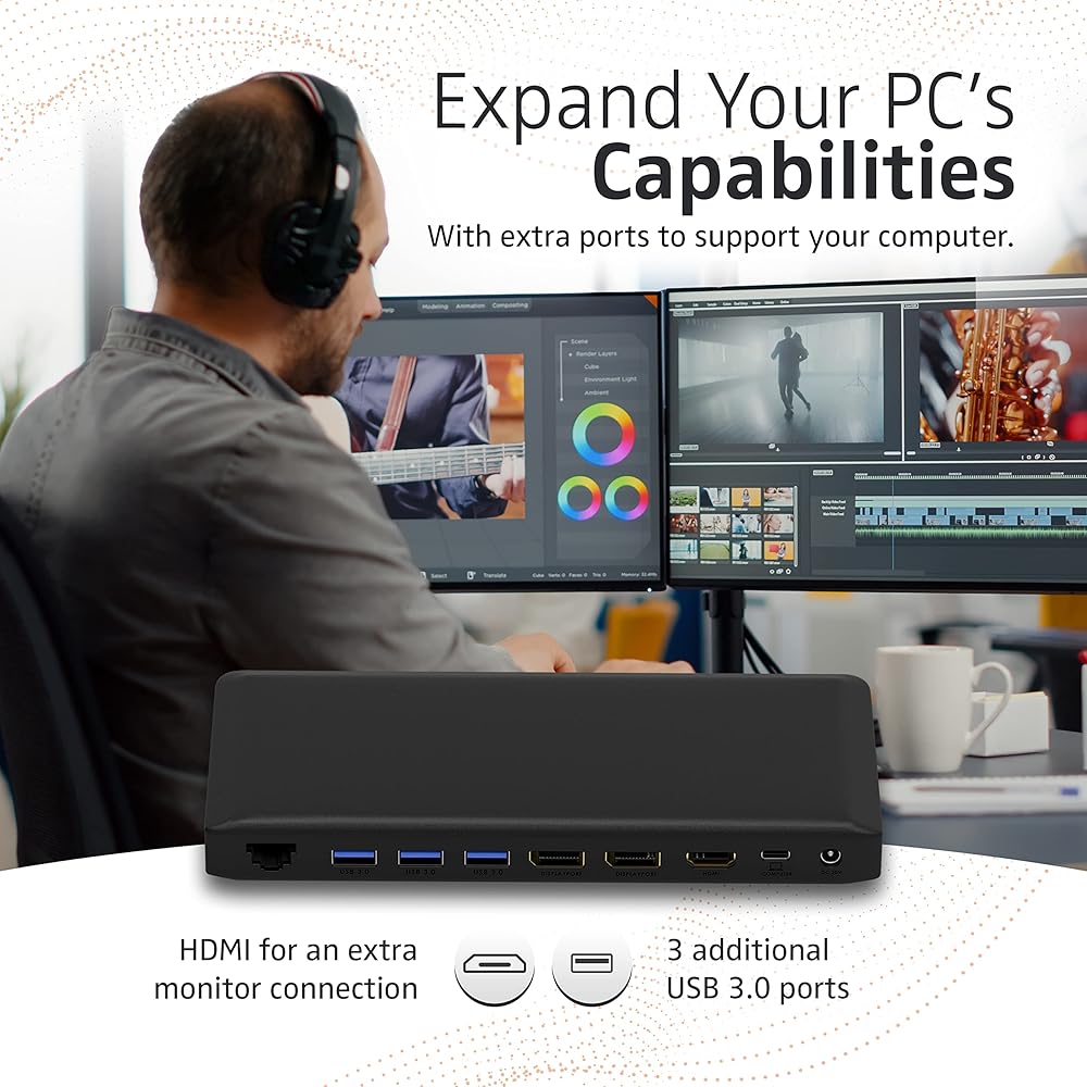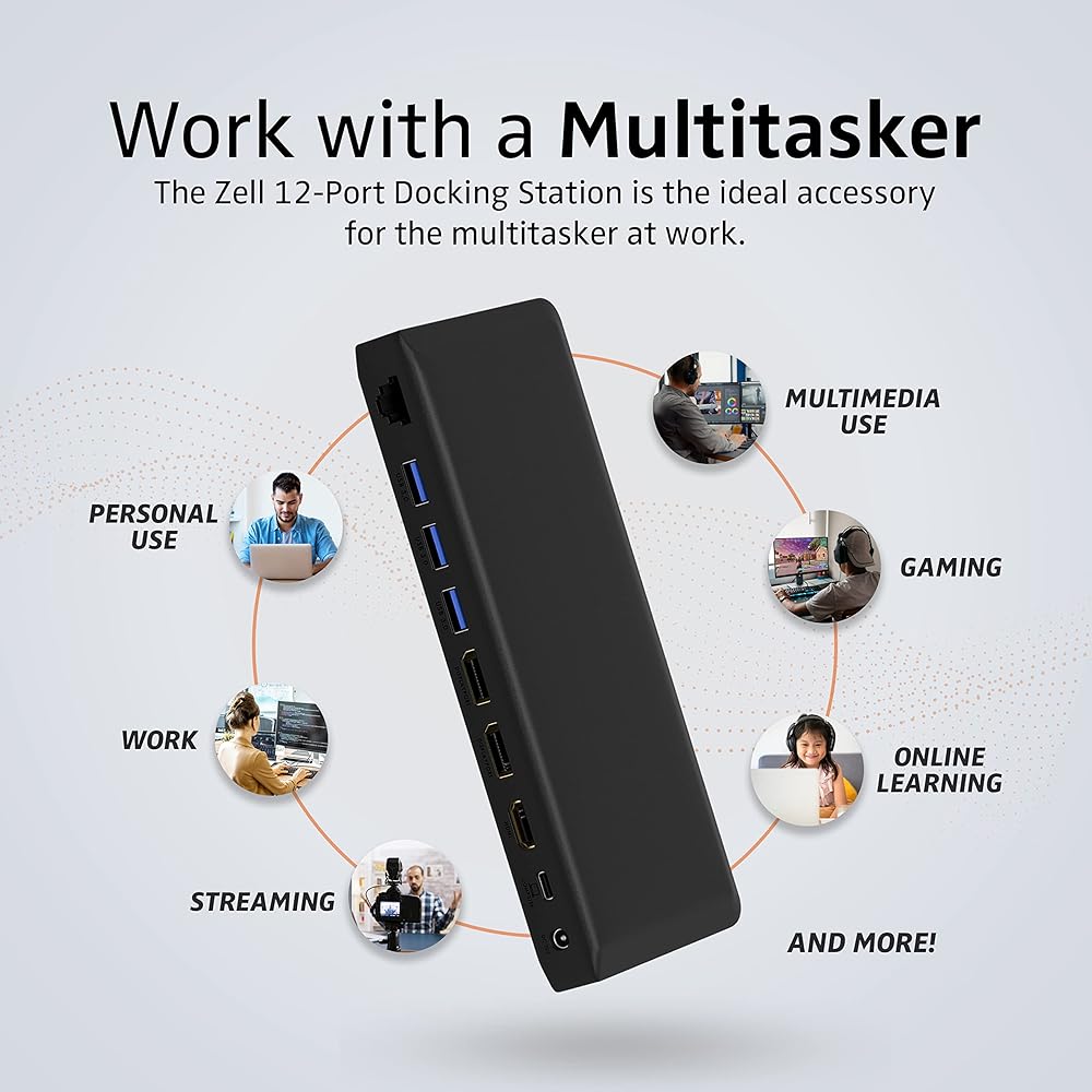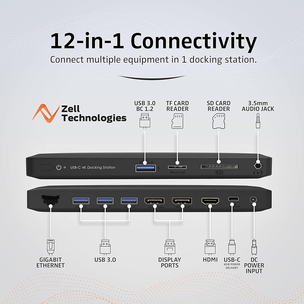 يأتي محور USB C للتوصيل والتشغيل مزودًا بمخرج فيديو HDMI بدقة 4K، ومنفذ عرض، ومنفذ إيثرنت RJ45 1000M، ومنفذ شحن من النوع C PD 3.0، ومنافذ USB 3.0، ومنافذ USB 2.0، ومنفذ بيانات USB 3.0 من النوع C وقارئ بطاقات SD وTF بسرعة 5 جيجابت في الثانية.
