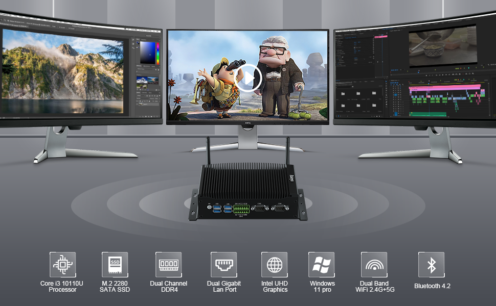 🌟 【شاشة عرض ثلاثية بدقة 4K UHD وناقل حركة عالي السرعة】مجهز برسومات UHD لمعالجات Intel من الجيل العاشر، يدعم الكمبيوتر الصغير شاشة ثلاثية بدقة 4K UHD ويحسن كفاءة العمل لديك. المدمج في 2.4G/5.0G ثنائي النطاق WiFi5، 1000Mbps LAN وهوائيين، يوفر الكمبيوتر المكتبي Baiyu Mini شبكة مستقرة. يتوفر BT 4.2 لتوصيل الأجهزة الطرفية للكمبيوتر. توفر 4 منافذ USB 3.0 نقل بيانات عالي السرعة بسرعة 5 جيجابت في الثانية.