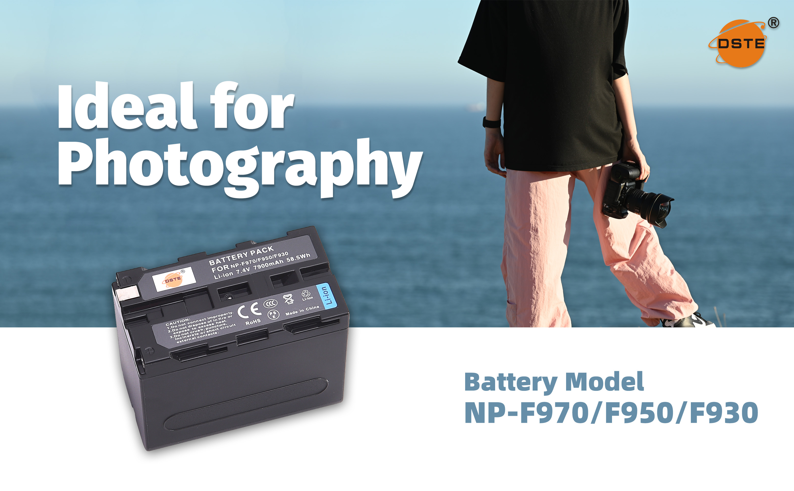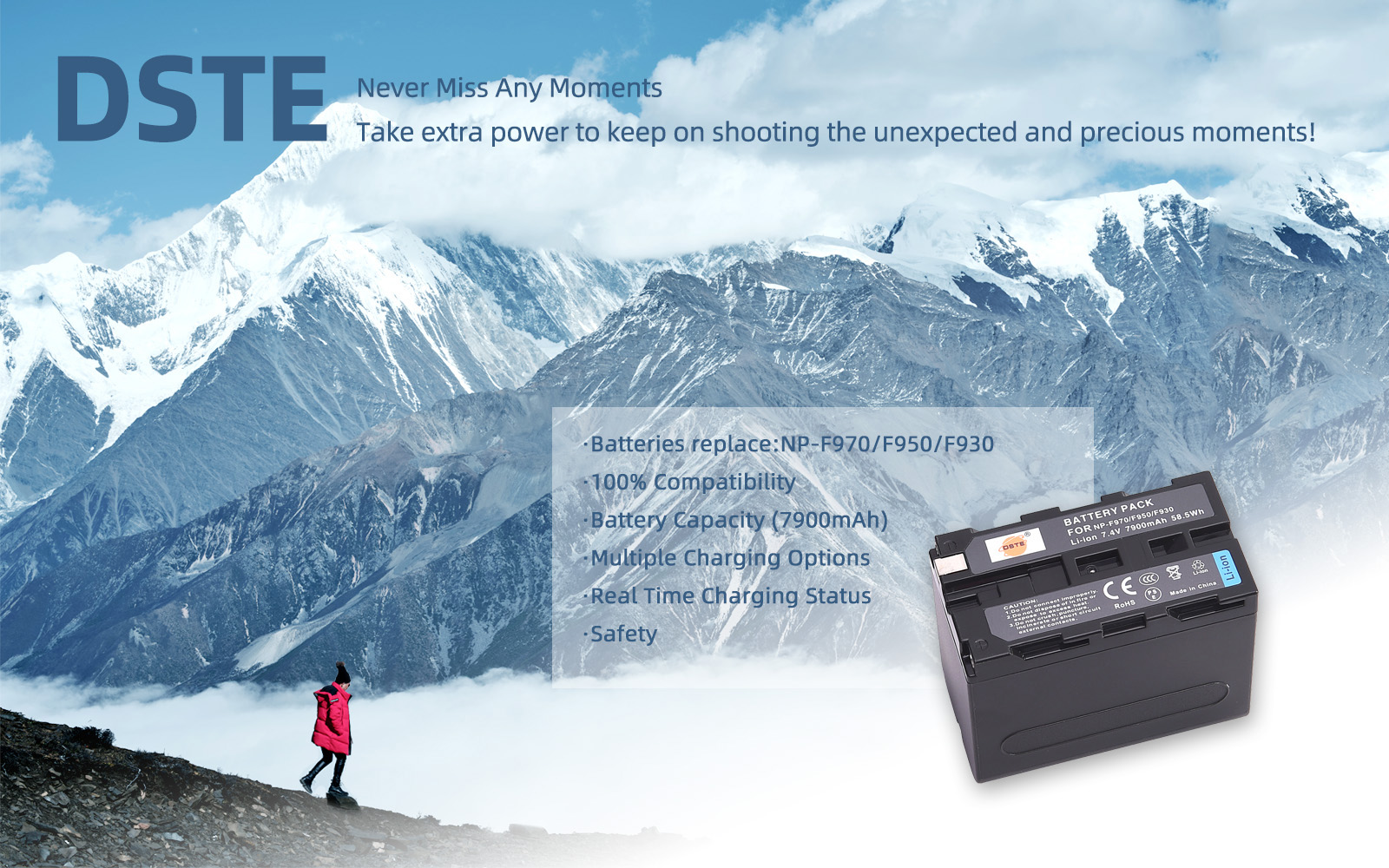 QIAOJINLIN DSTE 7.4V 7900mAh NP-F970 بطارية ليثيوم أيون قابلة لإعادة الشحن، بطارية بديلة متوافقة مع Sony NP-F550، NP-F530، NP-F570، NP-F330، NP-F790، NP-F770، NP-F730، NP-F950 ،NP-F930