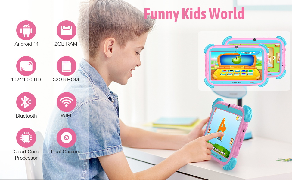 • 【هدية ذات معنى لأطفالك】إن وجود الكثير من الألعاب يجعل طفلك يشعر بالملل. جهاز الكمبيوتر اللوحي DOMATON للأطفال الصغار ليس فقط للعب والتعلم، ولكنه أيضًا نافذة لأطفالك لاستكشاف العالم. فاجئهم في عيد ميلادهم أو عيد الميلاد كهدية.