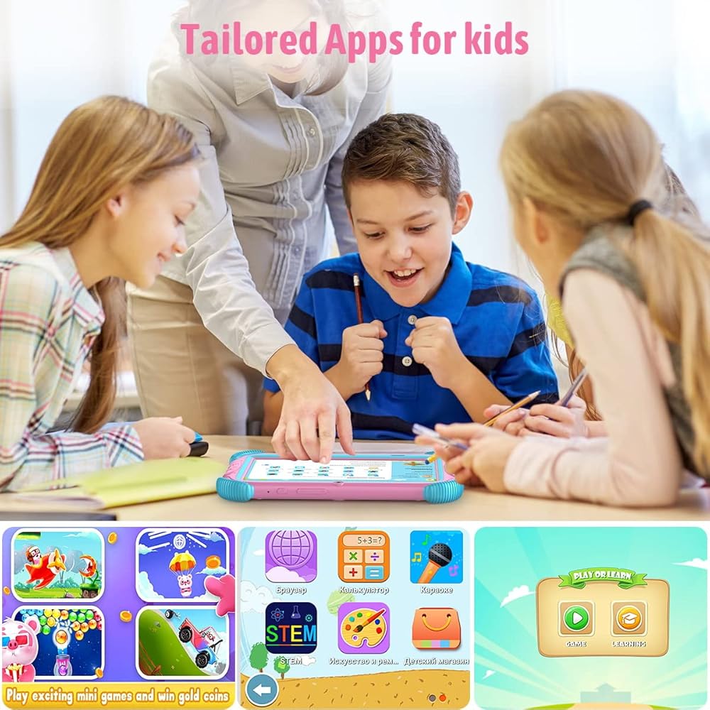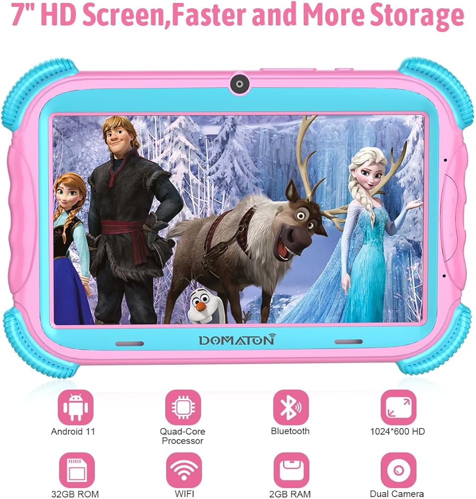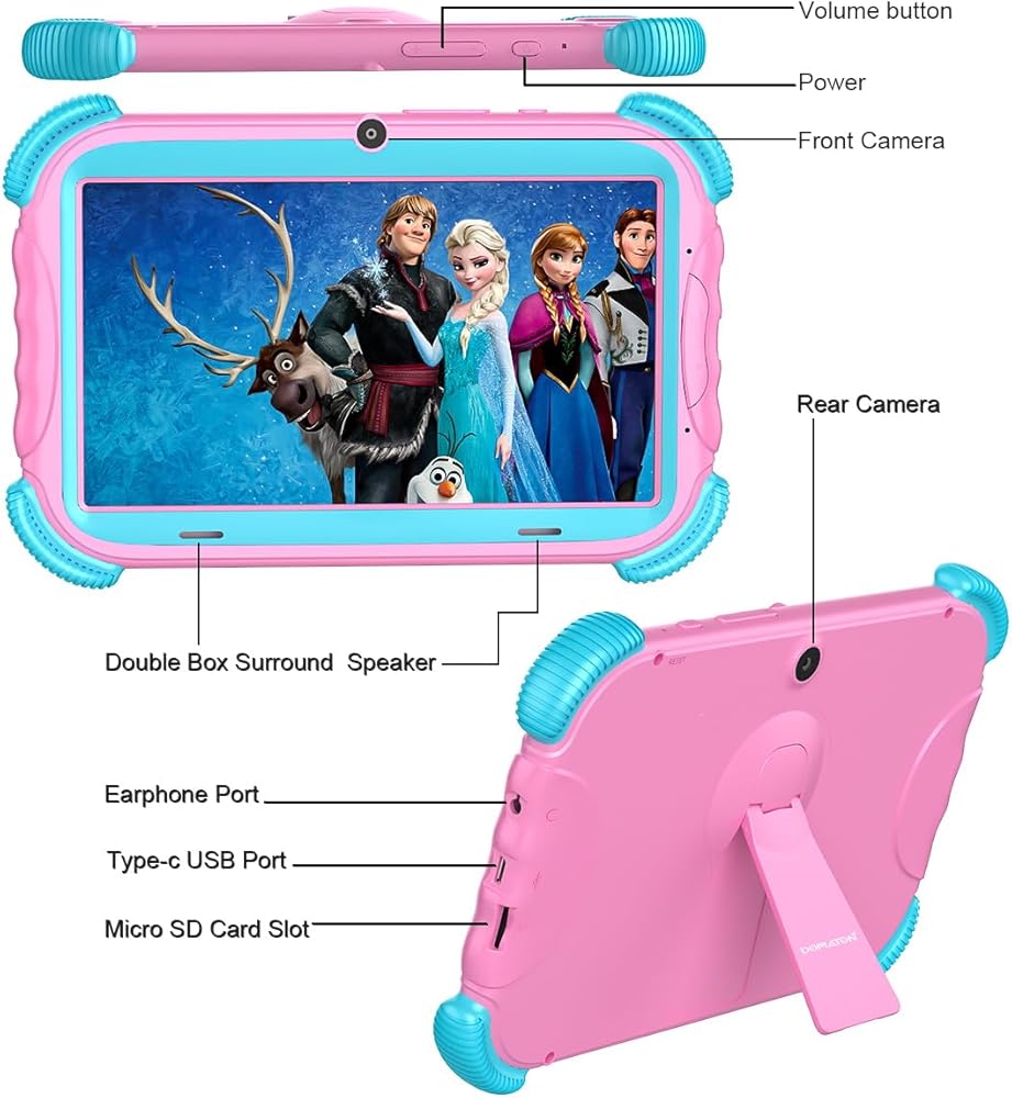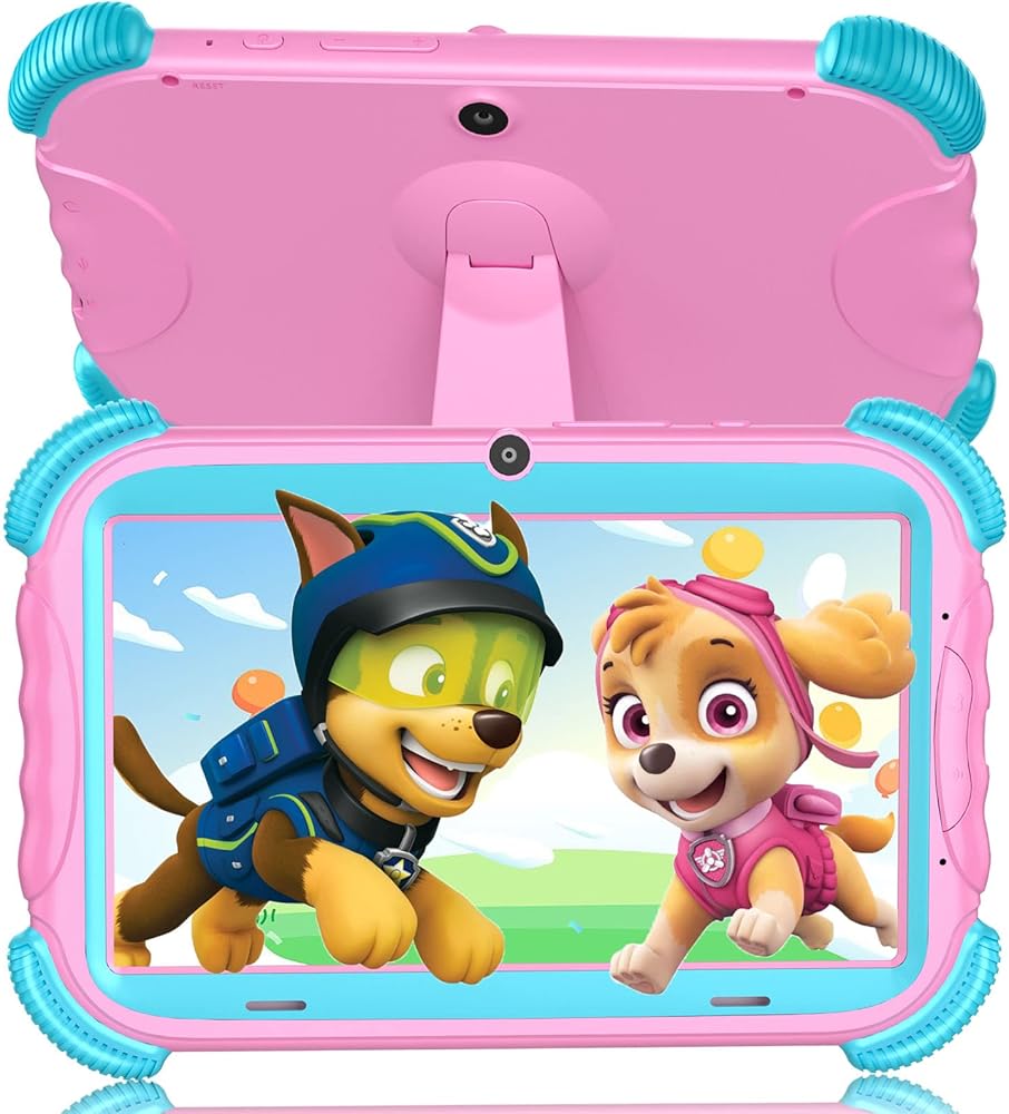 تابلت 7 بوصة للأطفال، تابلت تعليمي للتحكم الأبوي، 2+32 جيجابايت أندرويد 11.0، شاشة IPS، محتوى للأطفال مثبت مسبقًا، مع بلوتوث واي فاي، حافظة مقاومة للأطفال، YouTube Netflix Hulu (وردي)