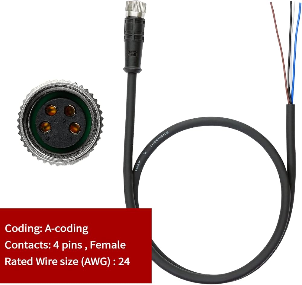 كابل M8 4 دبوس 2 متر أنثى كابل موصل دائري للترميز مقاوم للماء IP67 كابل طرفي واحد