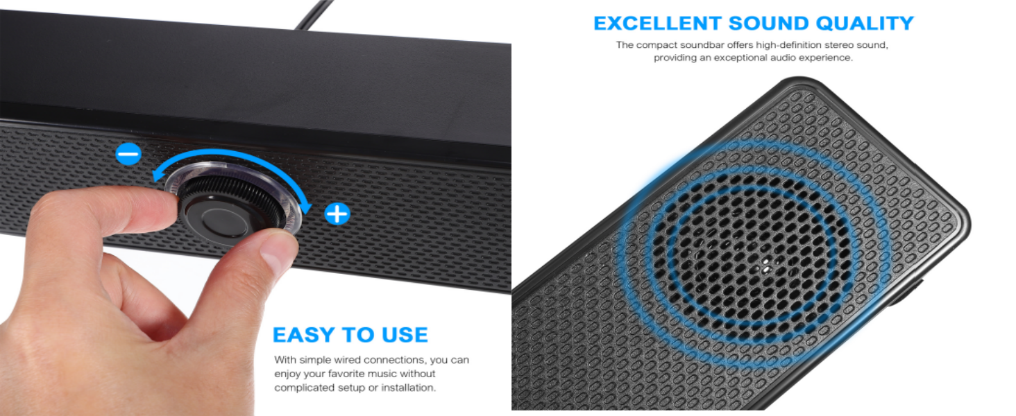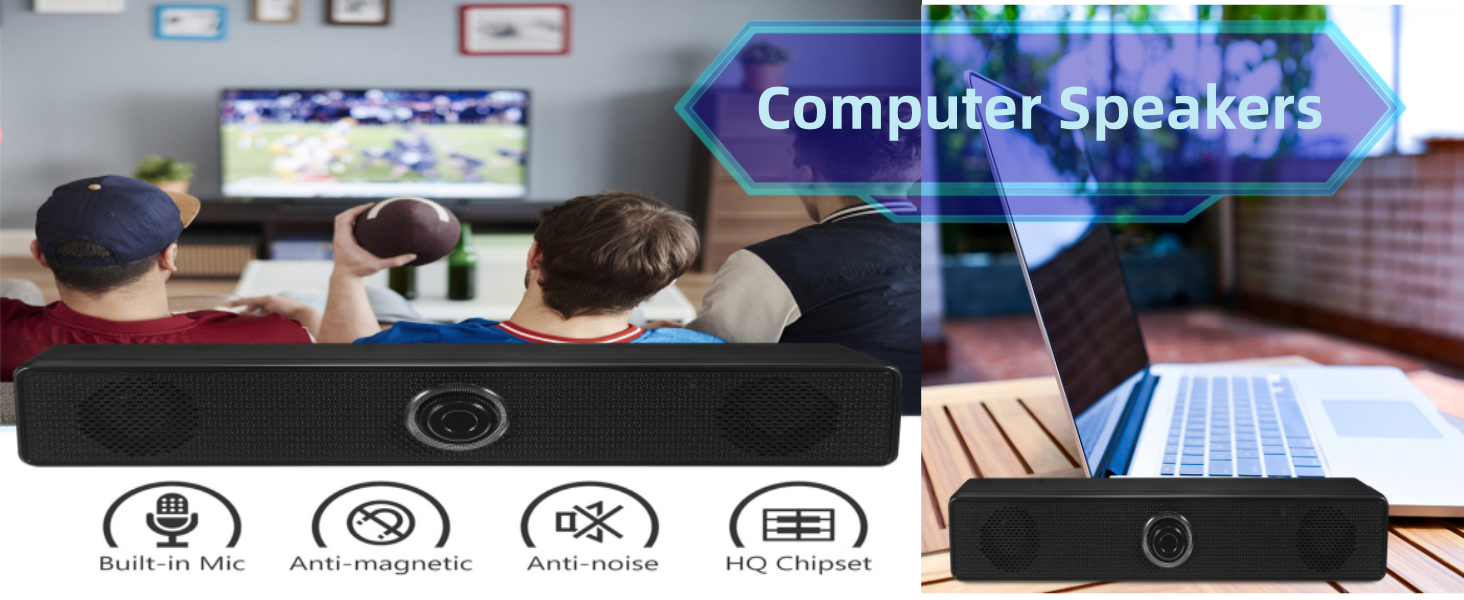 【Excellent Sound Quality】: Laptop speakers are equipped with powerful drive units, providing high-definition stereo sound. Soundbars can enhance your listening experience when enjoying movies, videos, music, and games indoors.