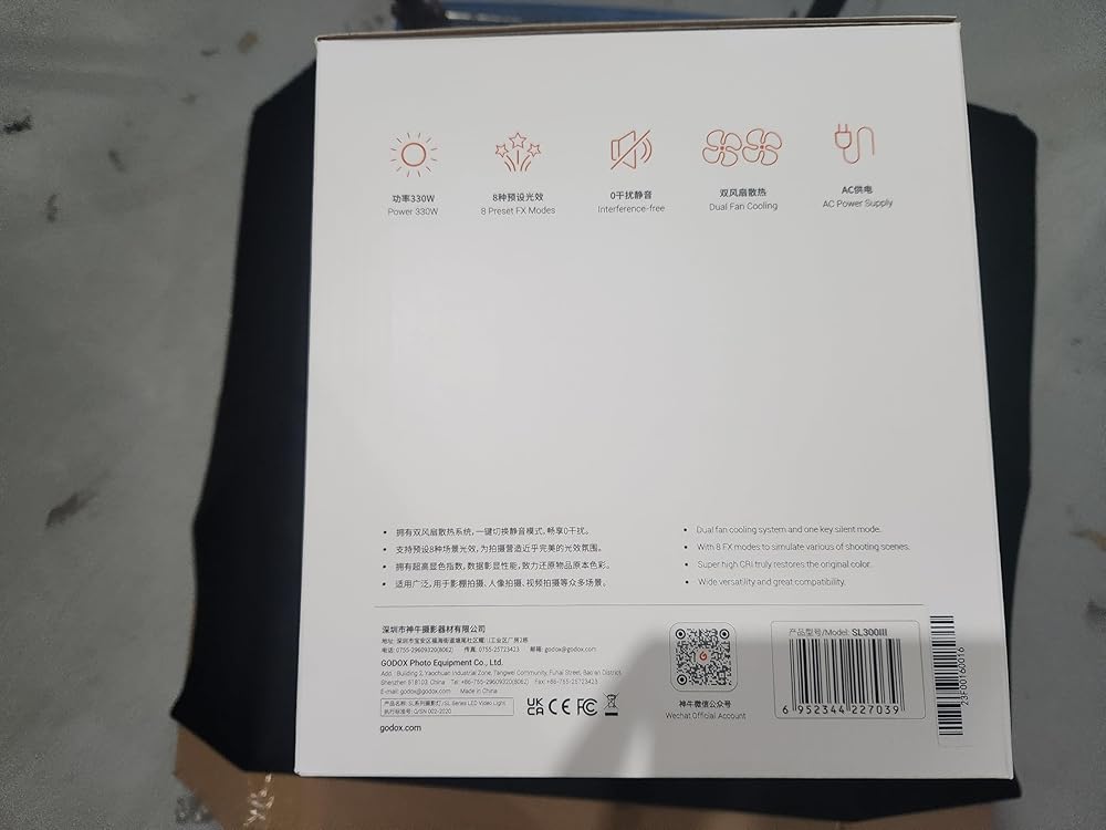 غودوكس مصباح فيديو LED متوازن SL300II SL-300II بقدرة 320 واط 5600 كلفن، مع وضع طاقة قوي، وضع صامت، تاثيرات اف اكس للتصوير الفوتوغرافي لحديثي الولادة، البورتريه، اضاءة المقابلات، تصوير الفيديو.