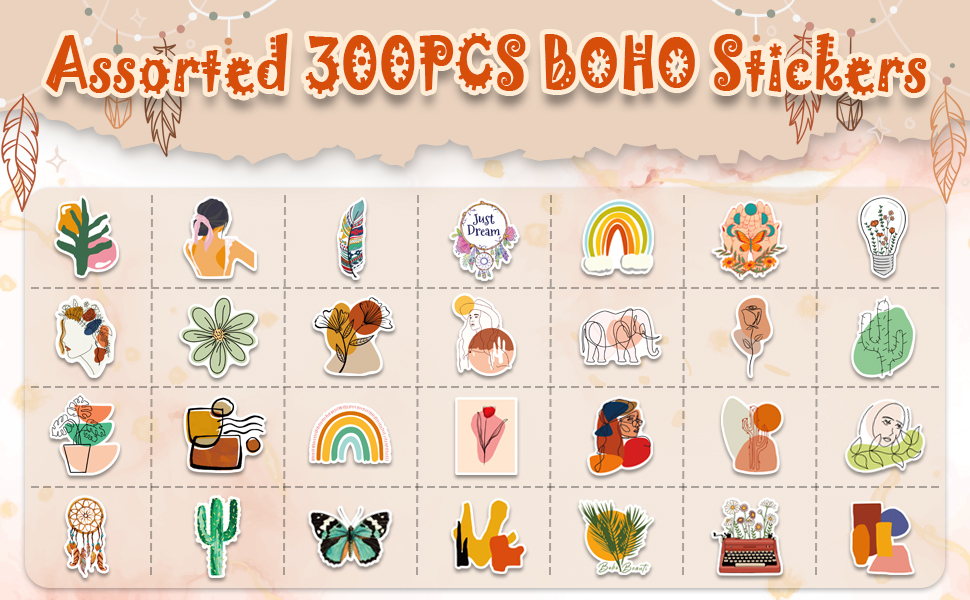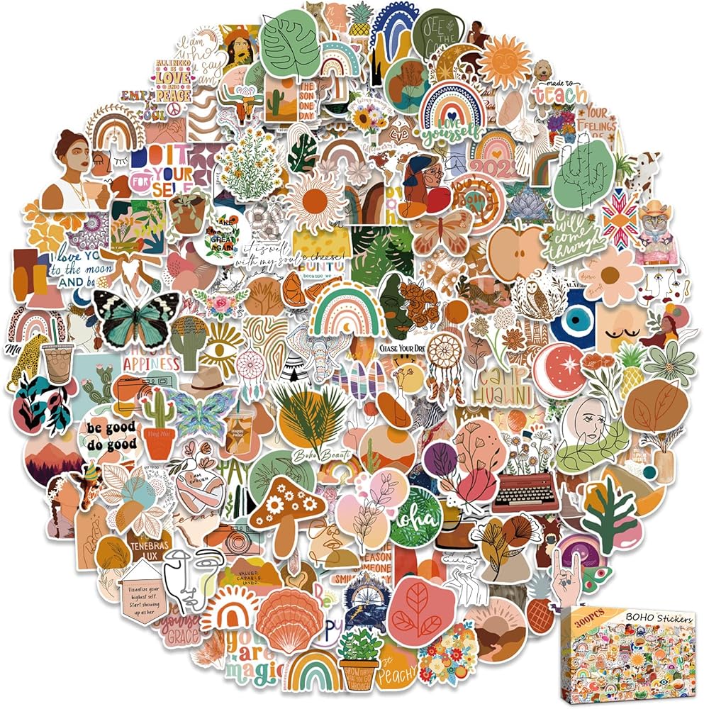 • 1. 300 قطعة ملصقات بوهو: تتضمن حزمة الملصقات 300 قطعة ملصق بوهو. ملصقات متنوعة ولا يوجد مكررة، وسيظهر الملصق في الصورة الرئيسية في عبوتك. مقاس الملصق المقاوم للماء يقرب من 5.08 سم إلى 7.62 سم.