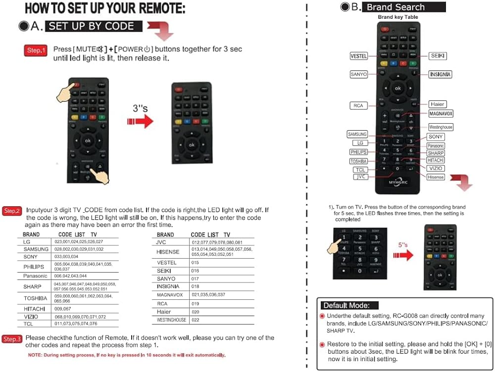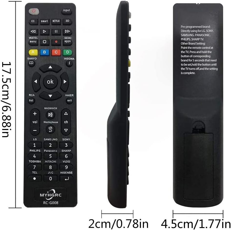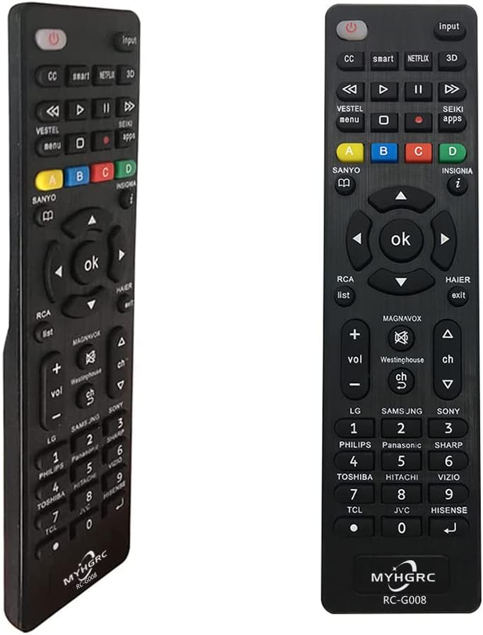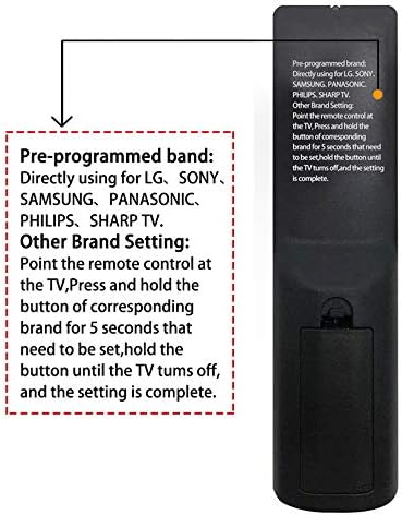 جهاز التحكم عن بعد العالمي هذا هو جهاز تحكم عن بعد قياسي بالأشعة تحت أدخل البطاريات والإعداد البسيط، ثم استخدم جهاز التحكم عن بعد هذا في العديد من العلامات التجارية التلفزيونية. يمكن أن يعمل بشكل جيد مع أجهزة تلفاز سامسونج وال جي وسوني وهيسنس وشارب وغيرها من العلامات التجارية التي تحتوي على 16 قطعة.