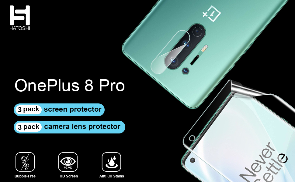 هاتوشي عبوة من 6 قطع من 3 قطع من واقي الشاشة المرن + 3 قطع من واقي عدسة الكاميرا مصمم لهاتف ون بلس 8 برو 6.8 انش، مجموعة تركيب مطورة من طبقة البولي يوريثين الحراري متوافقة مع الحافظة HD شفافة