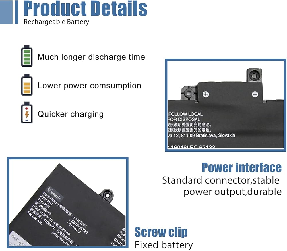 المواصفات: الموديل: 01AV418 / النوع: ليثيوم أيون / الجهد: 14.6 فولت / السعة: 41 وات في الساعة 2810 مللي أمبير في الساعة