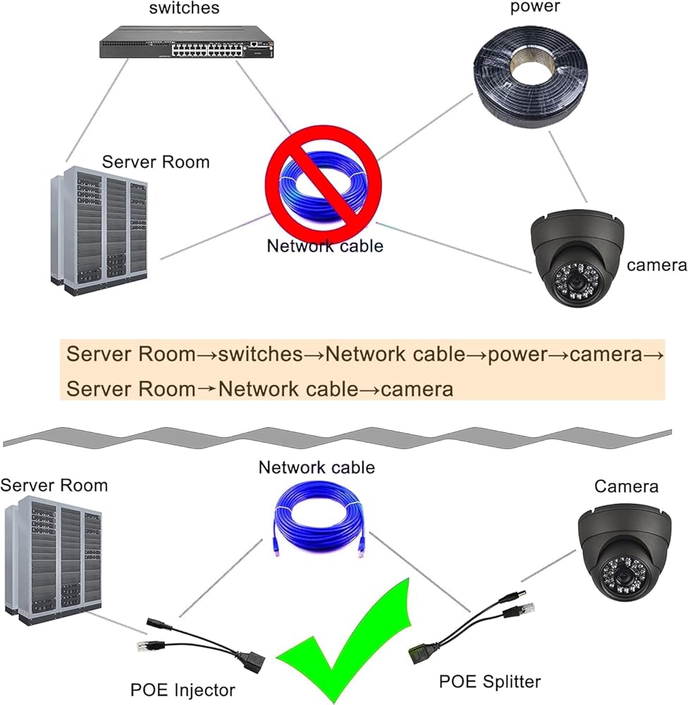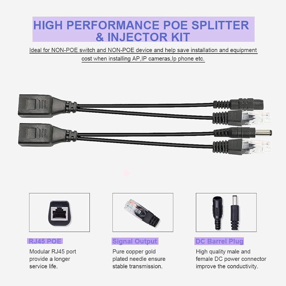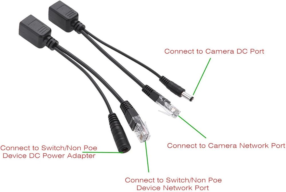 الطاقة من POE بشكل عام هي 24 فولت، ومعظم الأجهزة المستقلة هي 5 فولت إلى 12 فولت. يُستخدم هذا المنتج مع مصدر طاقة 12 فولت لتلك الكاميرا (مثالي لـ 12 فولت تيار مستمر)، التيار المقدر: 1.5 أمبير. فهو يضيف الطاقة فقط إلى كابل Ethernet من أحد طرفيه ثم يقوم بإزالته من طرف الكاميرا حتى تتمكن من توصيله بموصل طاقة الكاميرا. إذا نظرت إلى الصورة سترى أن أحد الموصلات المستديرة على الضفيرة الواحدة ذكر والآخر أنثى.