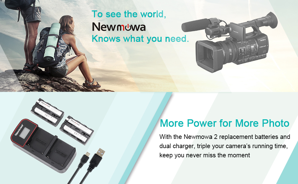 بطارية بديلة Newmowa NP-F550 (عبوتان) وشاشة LCD ذكية شاحن USB مزدوج لسوني NP-F550 وSony CCD-SC55 TR516 TR716 TR818 TR910 TR917