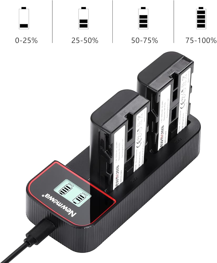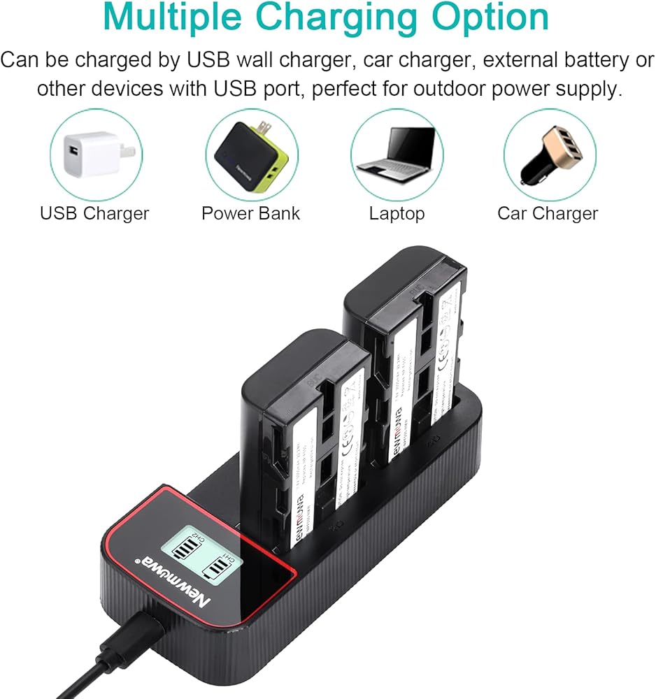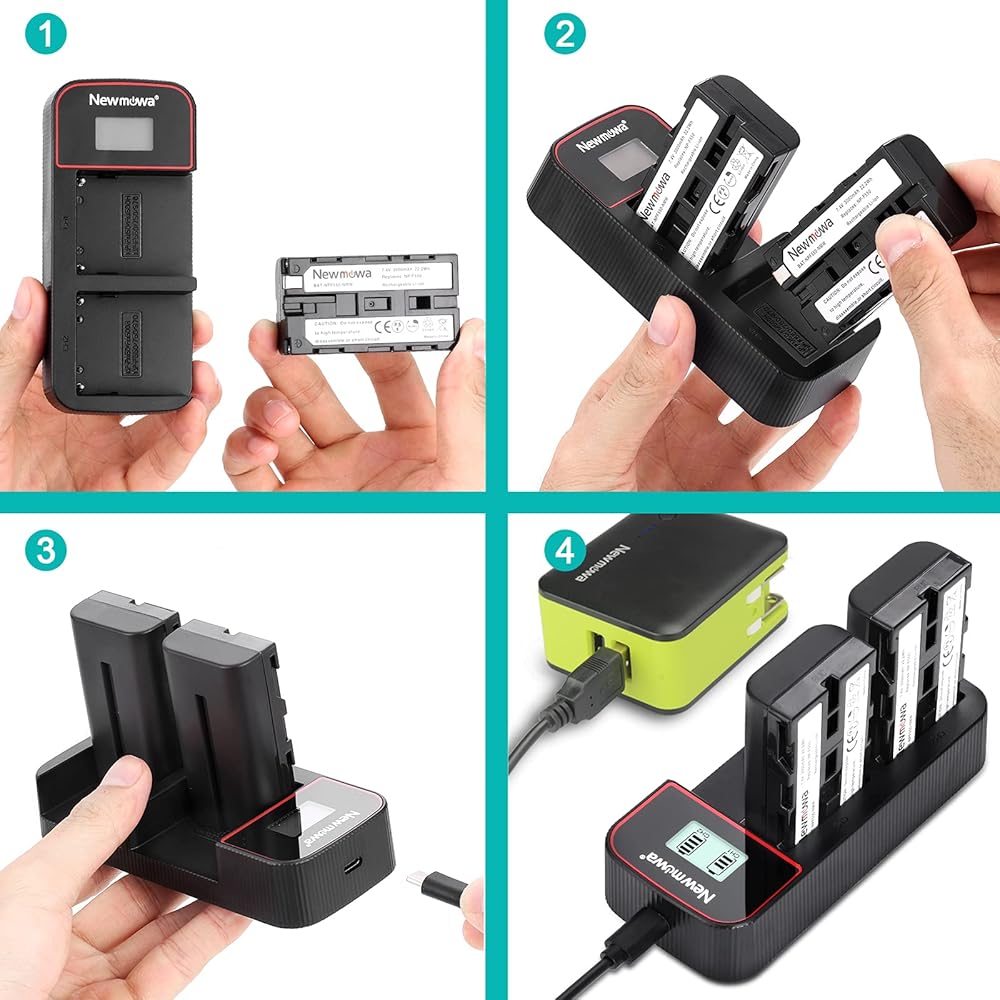 • السعة الدقيقة: تتميز كل بطارية NP F550 بقدرة 7.4 فولت، و3000 مللي أمبير في الساعة، وثلاثة أضعاف وقت تشغيل الكاميرا مع حزمة احتياطية كاملة تتضمن بطاريتين بديلتين وشاحن USB مزدوج بشاشة LCD ذكية