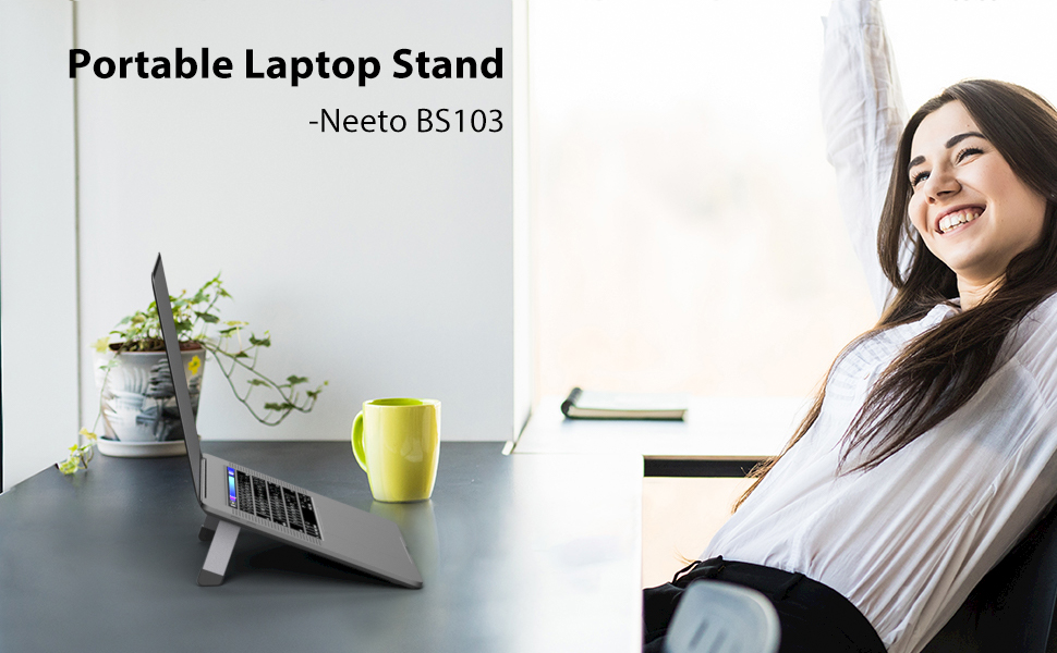حامل تبريد للكمبيوتر المحمول من Neetto، حامل رفع مريح للكمبيوتر المحمول قابل للطي من الألومنيوم للمكتب والطاولة والسفر، متوافق مع MacBook Air Pro وDell XPS وHP وLenovo والمزيد من أجهزة الكمبيوتر المحمولة مقاس 10-15.6 بوصة - BS103
