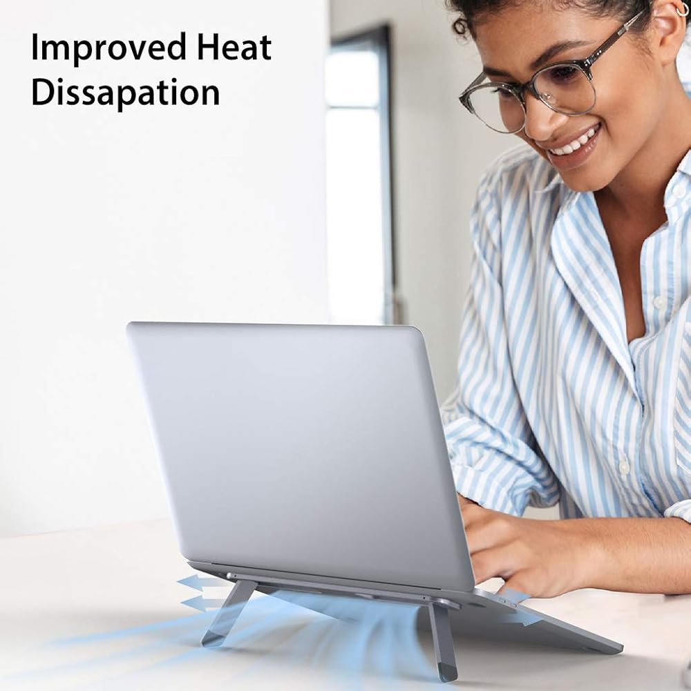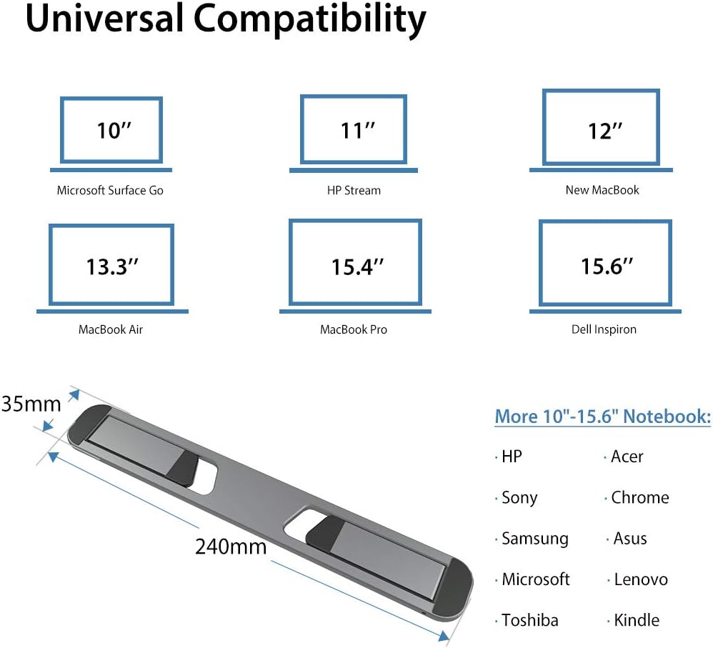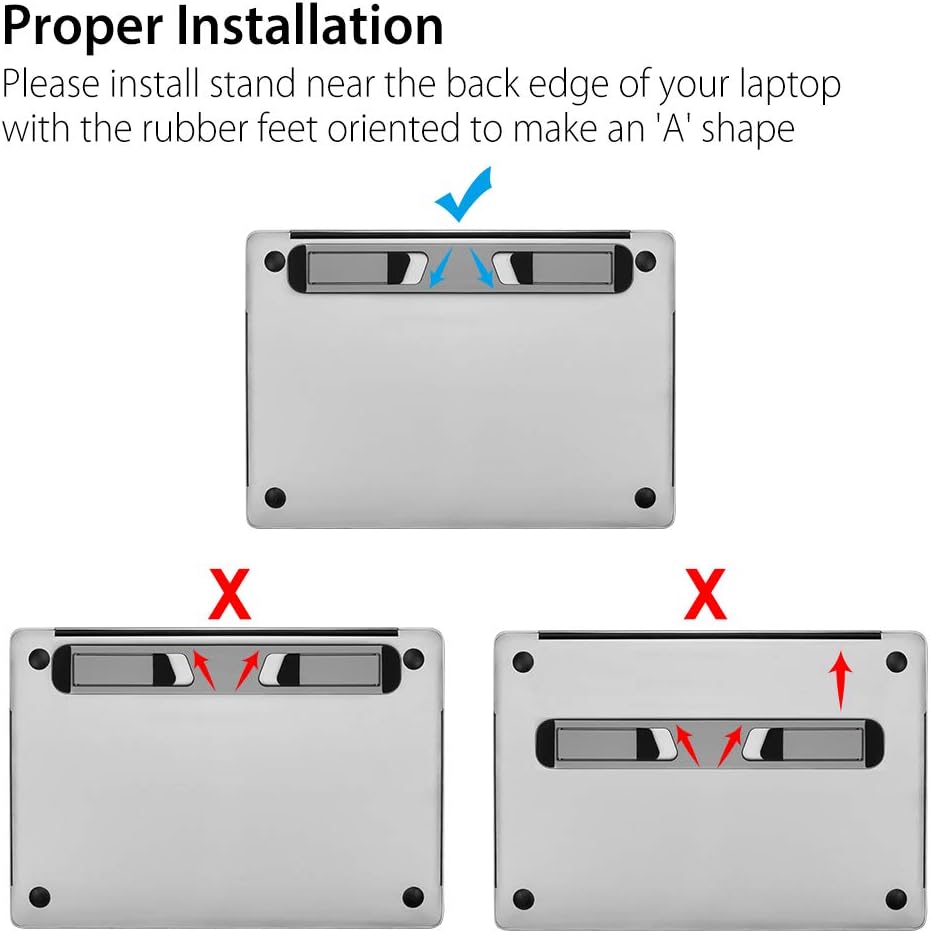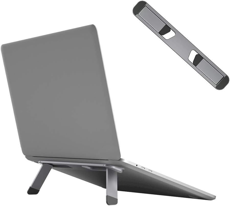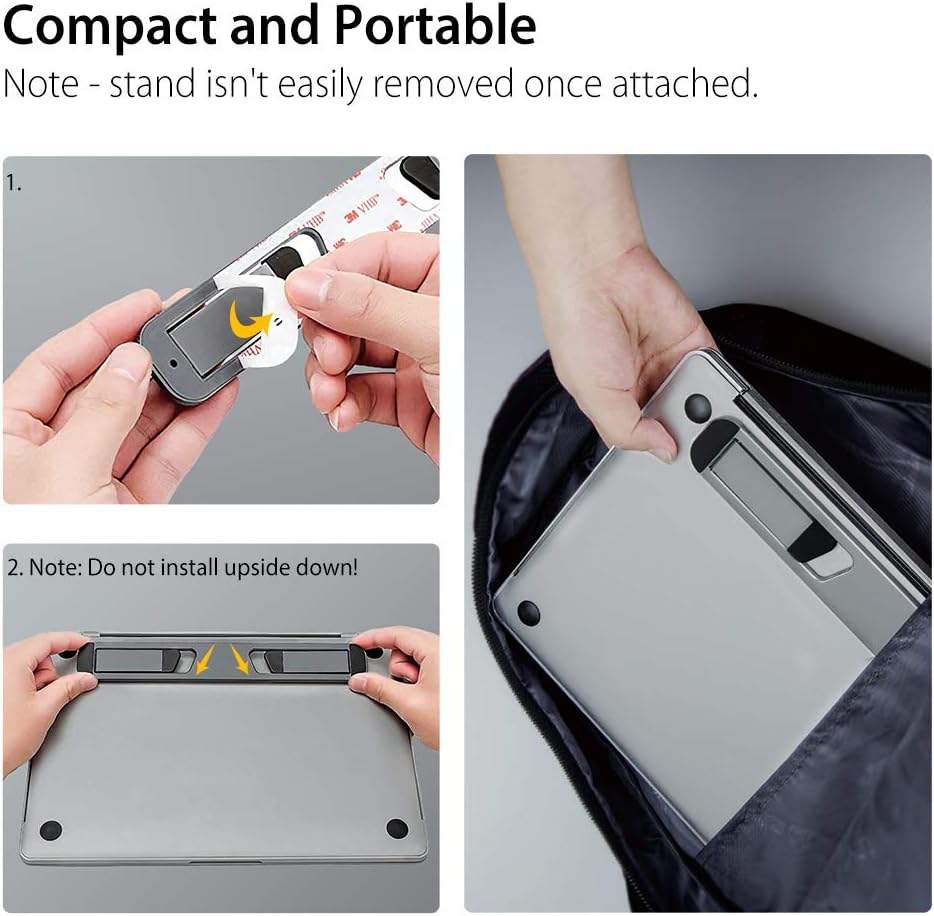 [COMPACT FOR STORAGE] Laptop stand is slim and lightweight, folding down to only 0.2" in thickness and weighing just 2.75 oz. The low-profile foldable design keeps the laptop thin for space saving storage. Simply attach it to the bottom of your laptop and you will barely even notice it is there! Great for traveling.