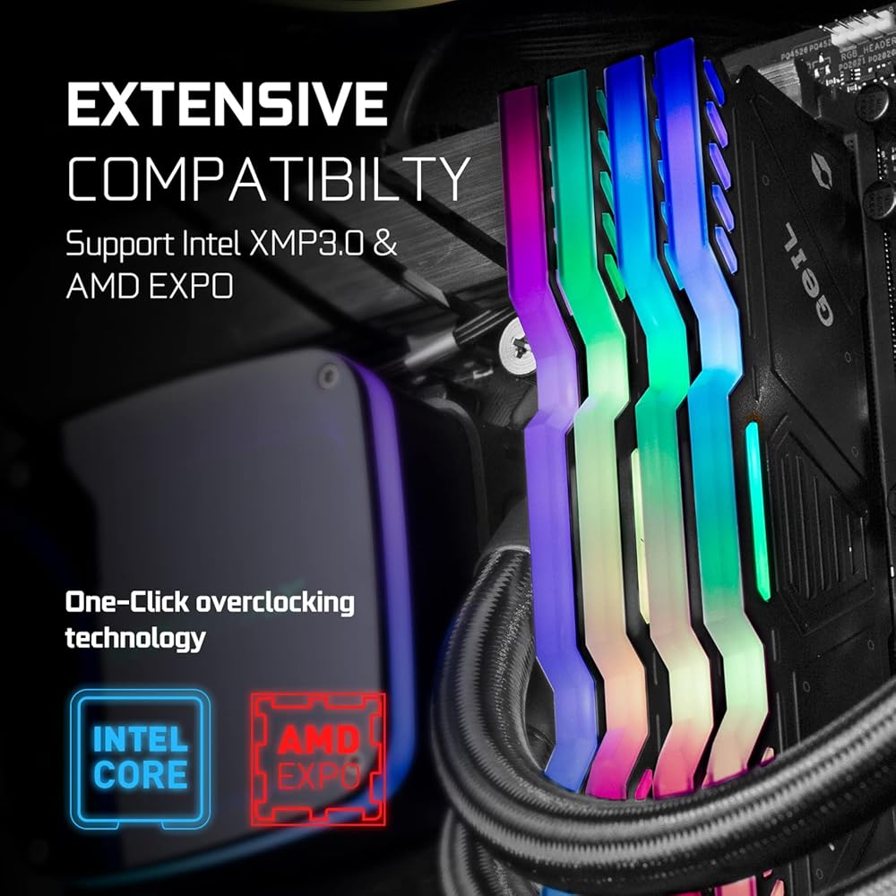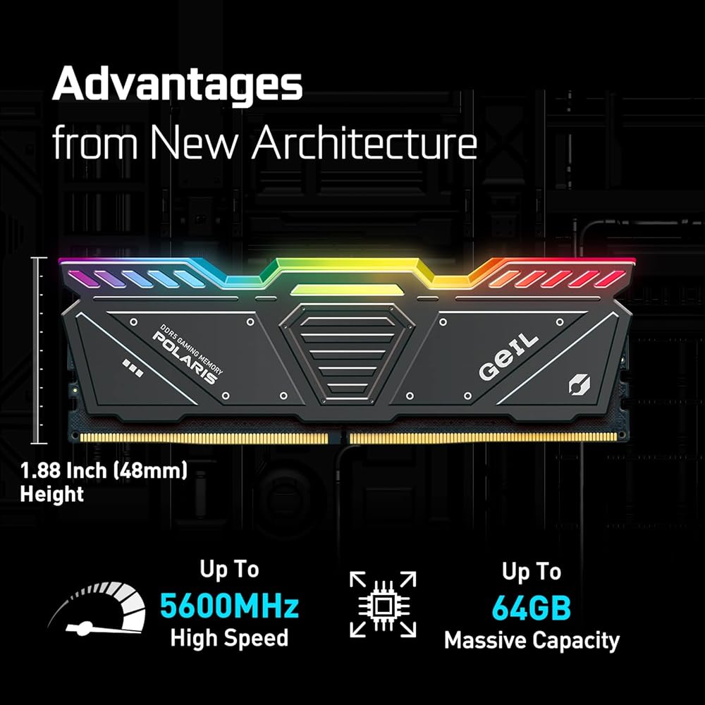 [إضاءة RGB ] ذاكرة جيل بولاريس RGB DDR5 تنفذ تصميم إضاءة RGB المحسّن الحصري لتجنب تأثير المصباح عبر شريط الإضاءة RGB وجلب المستخدمين تأثير إضاءة RGB رائع ومزج جيدًا.