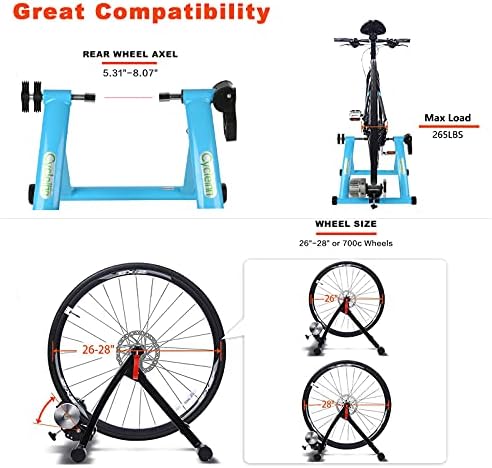 • ️محمولة ومتوافقة - حامل مدرب الدراجات المحمول خفيف الوزن وصغير الحجم وسهل الحمل والتخزين. يناسب حامل الدراجة الداخلي أي طريق أو دراجة جبلية مع عجلة مقاس 26 بوصة - 28 بوصة أو 700 درجة مئوية (الدراجات الجبلية ذات المحور من خلالها غير مناسبة). الحد الأقصى للحمولة 120 كجم