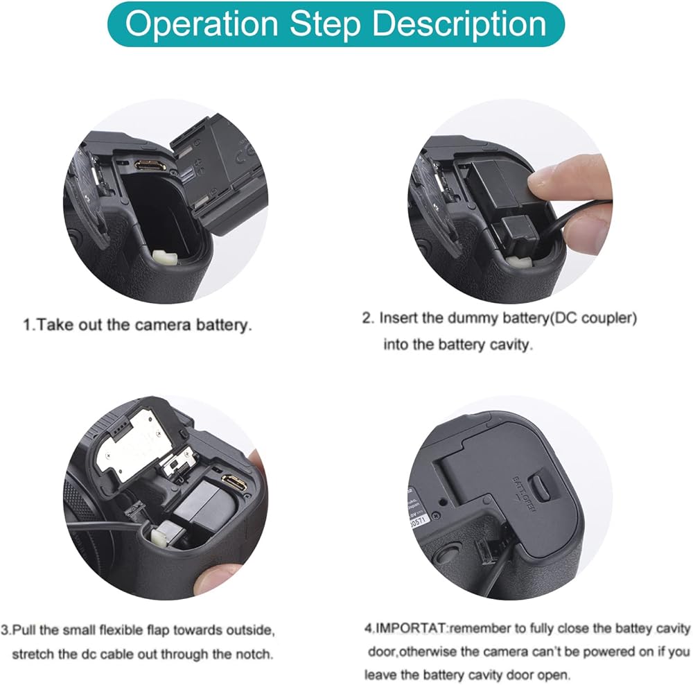 ستحصل على: 1 × محول طاقة تيار متردد، 1 × وصلة تيار مستمر LP-E5، 1 × سلك تيار متردد بقابس أمريكي. لا يمكن استخدام وصلة التيار المستمر LP-E5 بمفردها، تحتاج إلى تجهيز محول التيار المتردد/التيار المستمر الخاص بهذه المجموعة بحيث تعمل بشكل جيد مع الكاميرا. ضمان لمدة 12 شهرًا وخدمة عملاء ودودة على مدار 24 ساعة. يرجى ملاحظة أننا دائمًا هنا من أجلك.