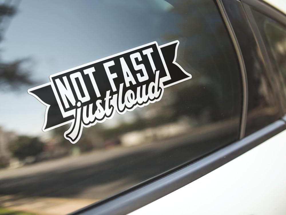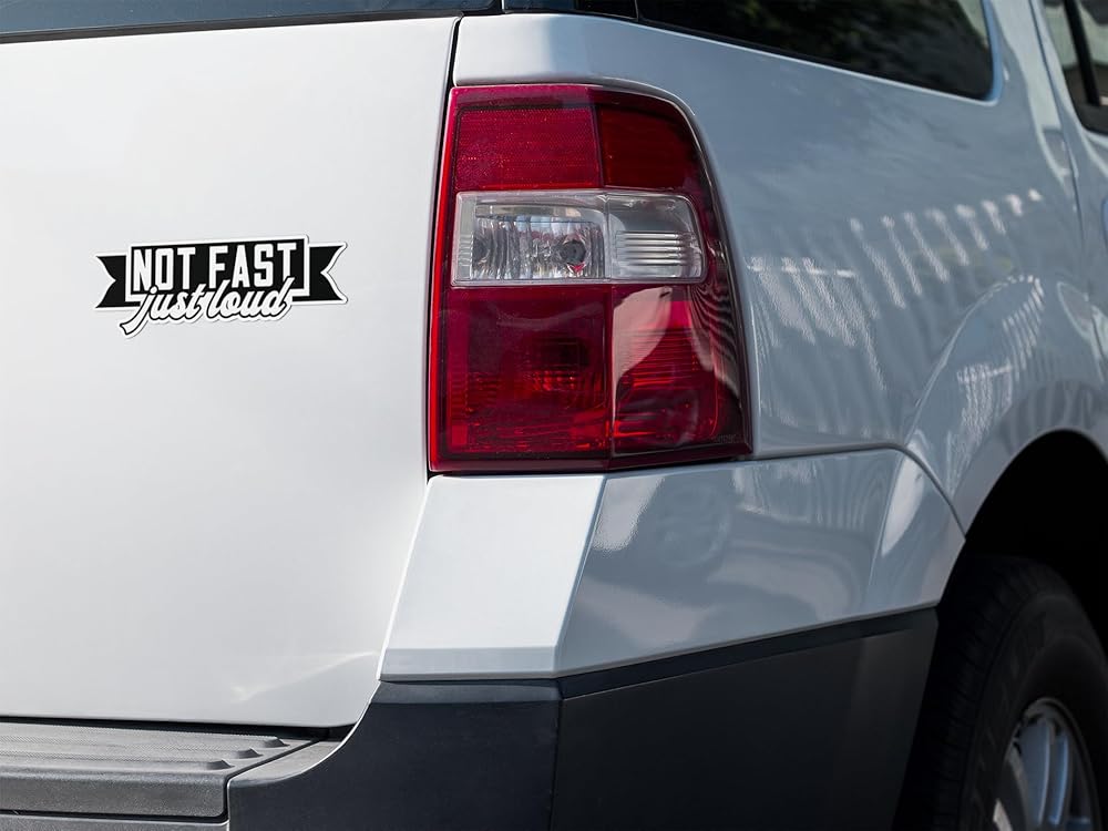 التعبيرات اللزجة | ملصق Not Fast Just Loud - المكمل المثالي لملصقات صوت السيارة وعشاق الملصقات! 7 بوصة × 2.5 بوصة - مادة متينة - للسيارات وأجهزة الكمبيوتر المحمولة والأكواب والمزيد