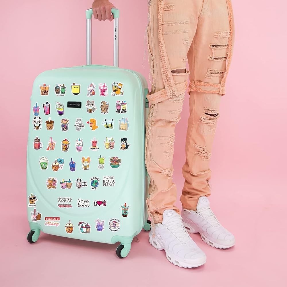 الصق في أي مكان: يمكنك لصق الملصقات الجمالية لألواح التزلج وزجاجات المياه وسجلات القصاصات والمرايا والدفاتر والأمتعة والدراجات والسيارات وأجهزة الكمبيوتر المحمولة وأي شيء تريده.