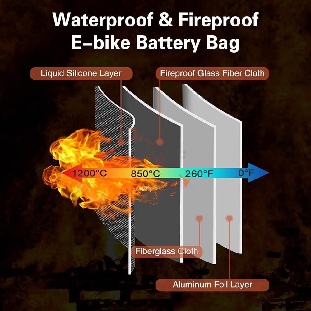 【Safeguard Lipo Battery】Lipo battery bag can protect battery from extreme temperatures and moisture. An ebike battery case provides an extra layer of protection, shielding the battery from potential damage caused by accidental drops or vibrations during rides. Additionally, the lipo charging bag helps prevent the battery from coming into contact with water, reducing the risk of short circuits or corrosion.