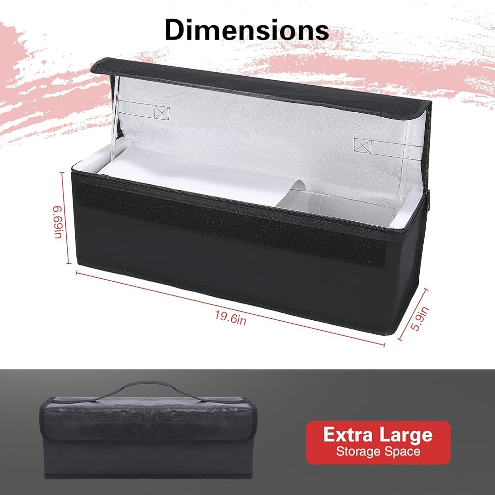 【Large Capacity Lipo Bag】The size of the fireproof battery bag is 19.3x4.3x7 inch, which can protect your E-bike batteries, camera batteries, toy batteries, drone batteries, dry batteries and various lithium batteries. In addition to storing batteries, ebike battery bag can also be used to store valuables, mobile phones, cash and various certificates and documents.