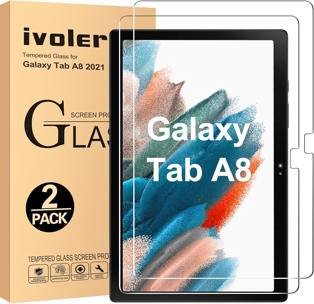 I فولر شاشة حماية شفافة HD مضادة للخدش لموبايل سامسونج جالاكسي تاب A8 مقاس 10.5 بوصة 2021 (SM-X200/X205/X207) (غير متوافقة مع جالاكسي تاب A7) متوافقة مع خاصية التعرف على الوجه، عبوة من قطعتين