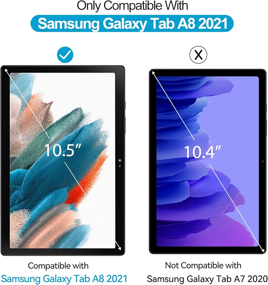 I فولر واقي شاشة متوافق مع سامسونج جالكسي تاب ايه 8 10.5 انش إصدار 2021، غير مناسب لجهاز جالكسي تاب ايه 7. يرجى التحقق من الطراز الخاص بك قبل الشراء. قبل التركيب، يرجى مشاهدة دليل التركيب الخاص بنا لضمان تركيب واقي الشاشة بشكل أفضل.
