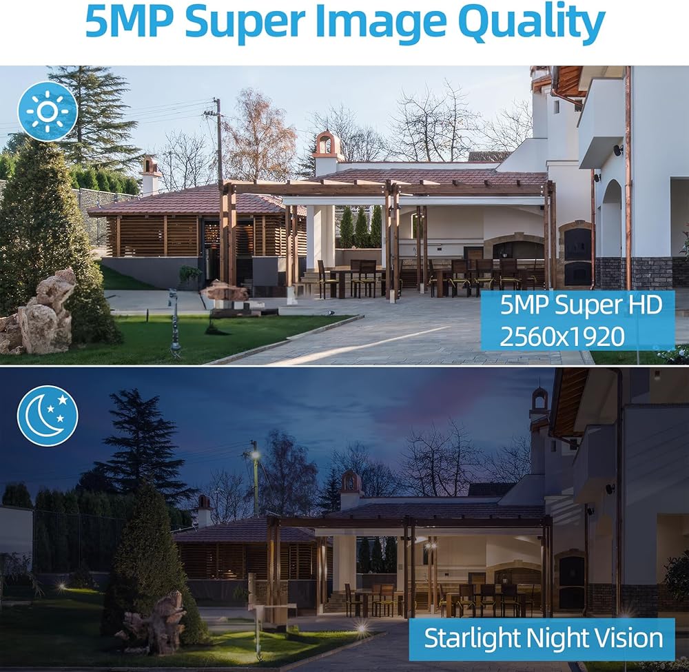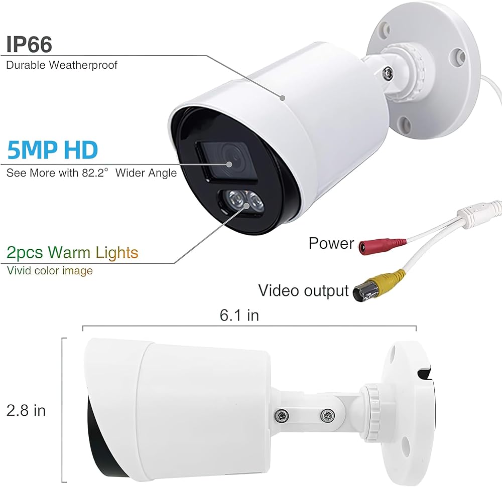 شاهد المزيد بدقة 5 ميجابكسل فائقة الدقة: تلتقط كاميرا المراقبة بدقة 5 ميجابكسل صورًا واضحة تمامًا بدقة 2560x1920، مما يوفر تفاصيل صورة أكثر من الكاميرات 2x1080P. مع عدسة مقاس 3.6 ملم وزاوية رؤية تبلغ 82.2 درجة، لن يفوتك أي شيء أبدًا.