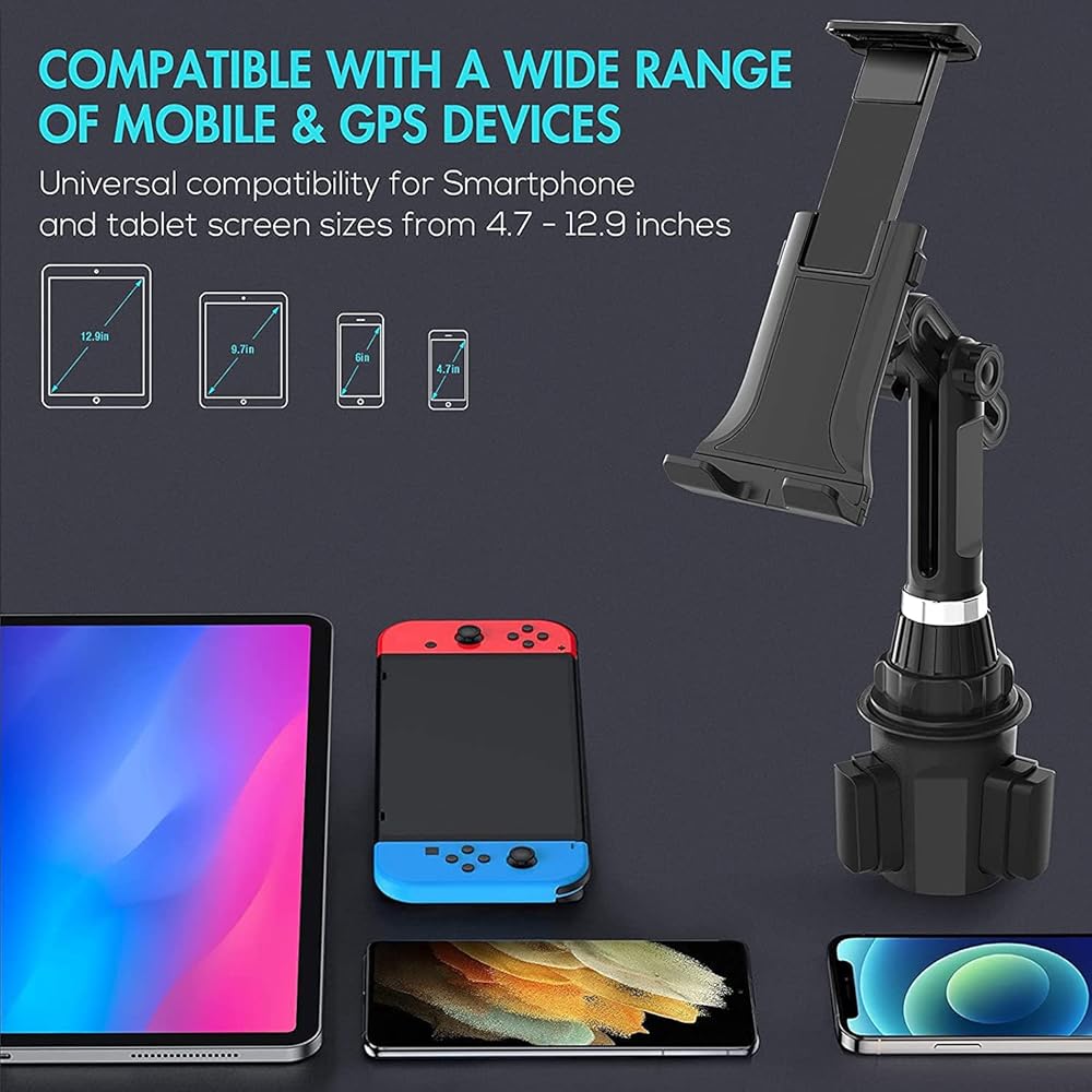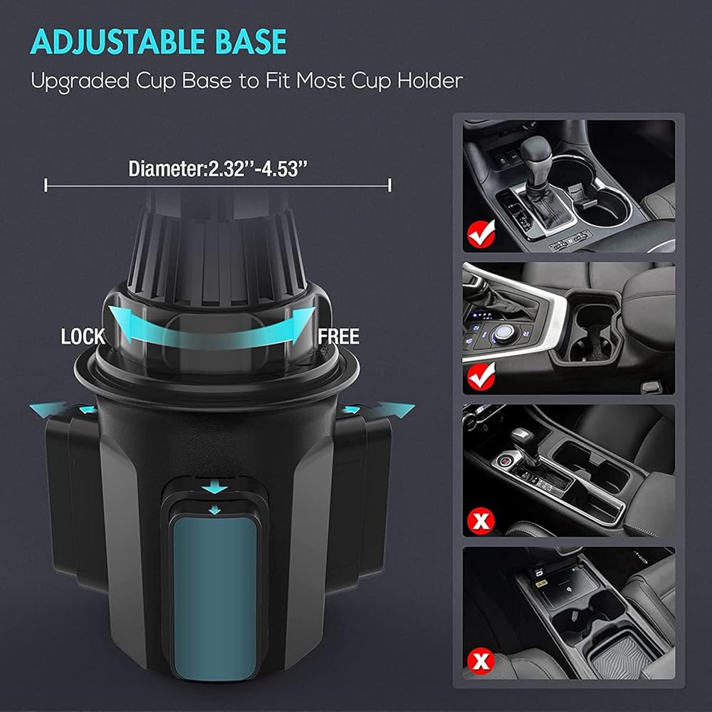 قاعدة أكواب ثابتة قابلة للتعديل وحامل ممتد مطور: قم بزيادة حجم القاعدة من 2.33 انش إلى الحد الأقصى 4.5 انش من حوامل الأكواب. يمتد الحامل من 4.15 انش إلى 8.45 انش كحد أقصى، ويعمل بشكل جيد على كل من الهاتف الخلوي والتابلت أقل من 12.9 انش.