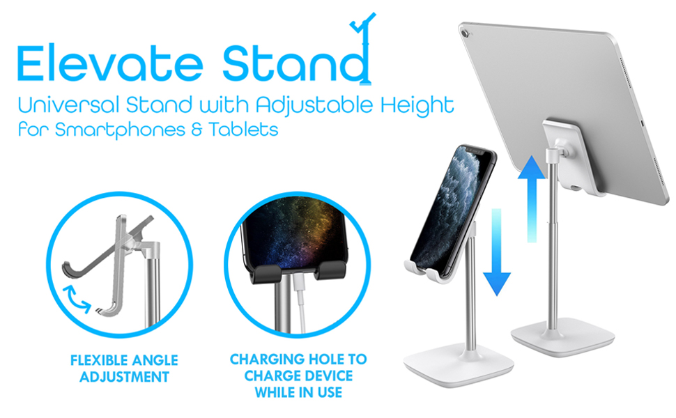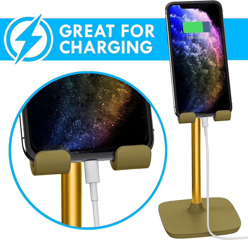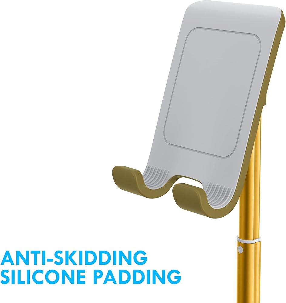 حامل Aduro Elevate للهاتف والكمبيوتر اللوحي، حامل حامل للهاتف الخلوي بارتفاع قابل للتعديل للمكتب متوافق مع iPhone iPad Galaxy وجميع الهواتف والأجهزة اللوحية (ذهبي)