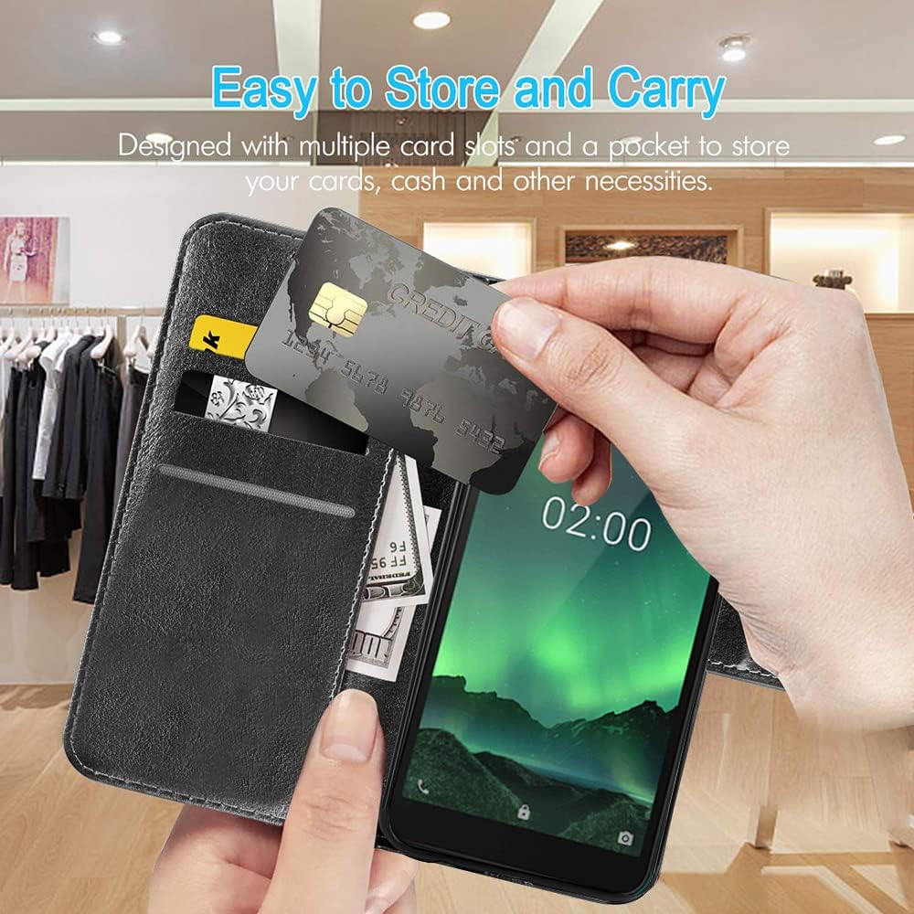 [متعددة الوظائف]: تحتوي حافظة هاتف نوكيا C100 على 3 فتحات للبطاقات لرخصة القيادة أو بطاقات الائتمان. جيب جانبي واحد للنقود والفواتير.