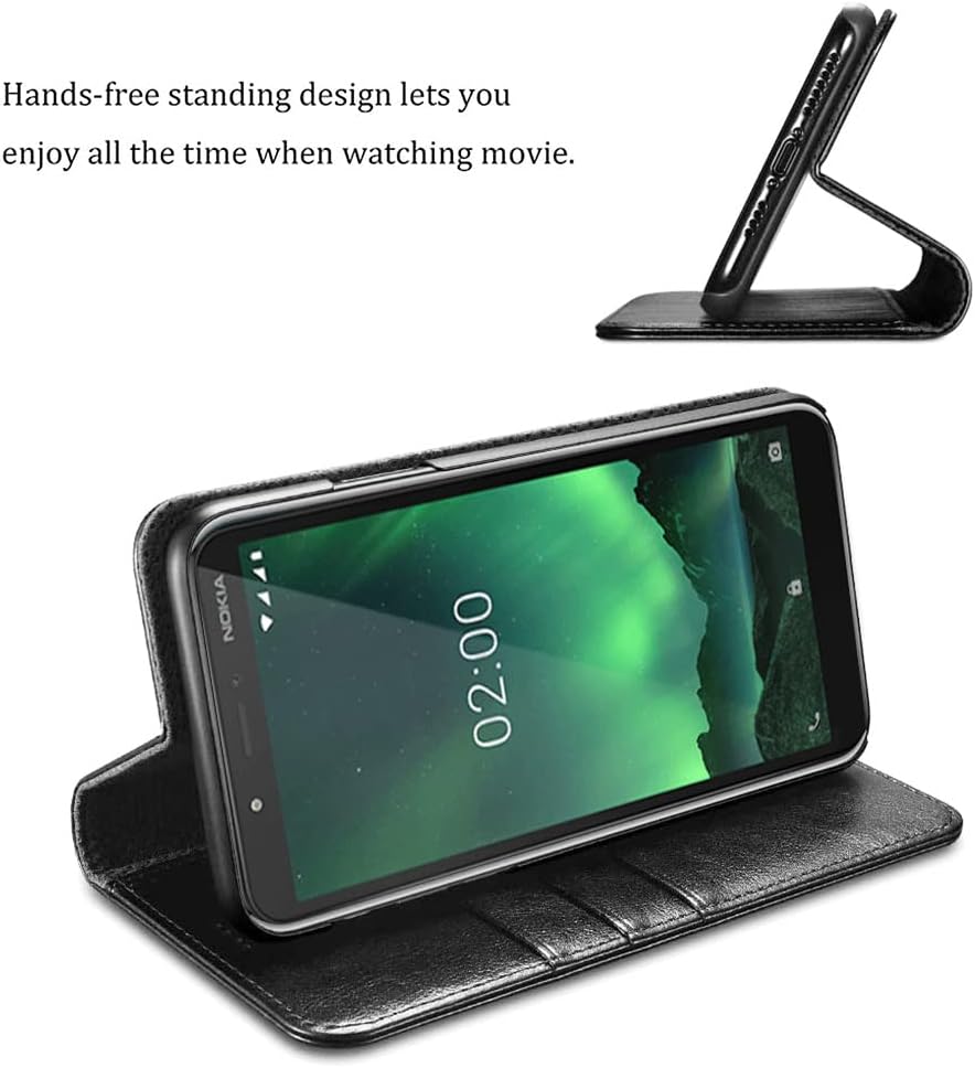 [ما تحصل عليه]: حافظة حماية قابلة للطي لهاتف نوكيا C100 تتضمن: قطعة واحدة من واقي الشاشة عالي الوضوح، 1 سوار معصم جلدي، 1 حافظة حماية للهاتف.