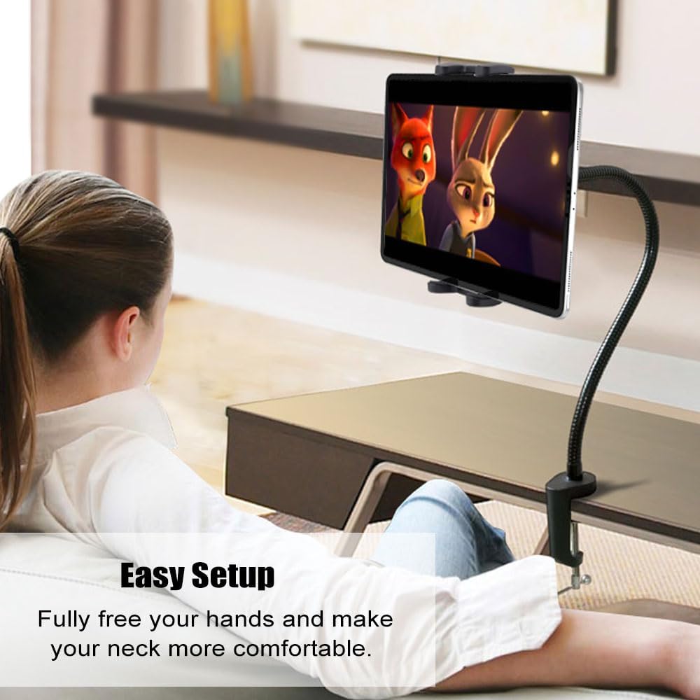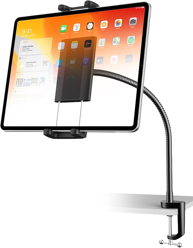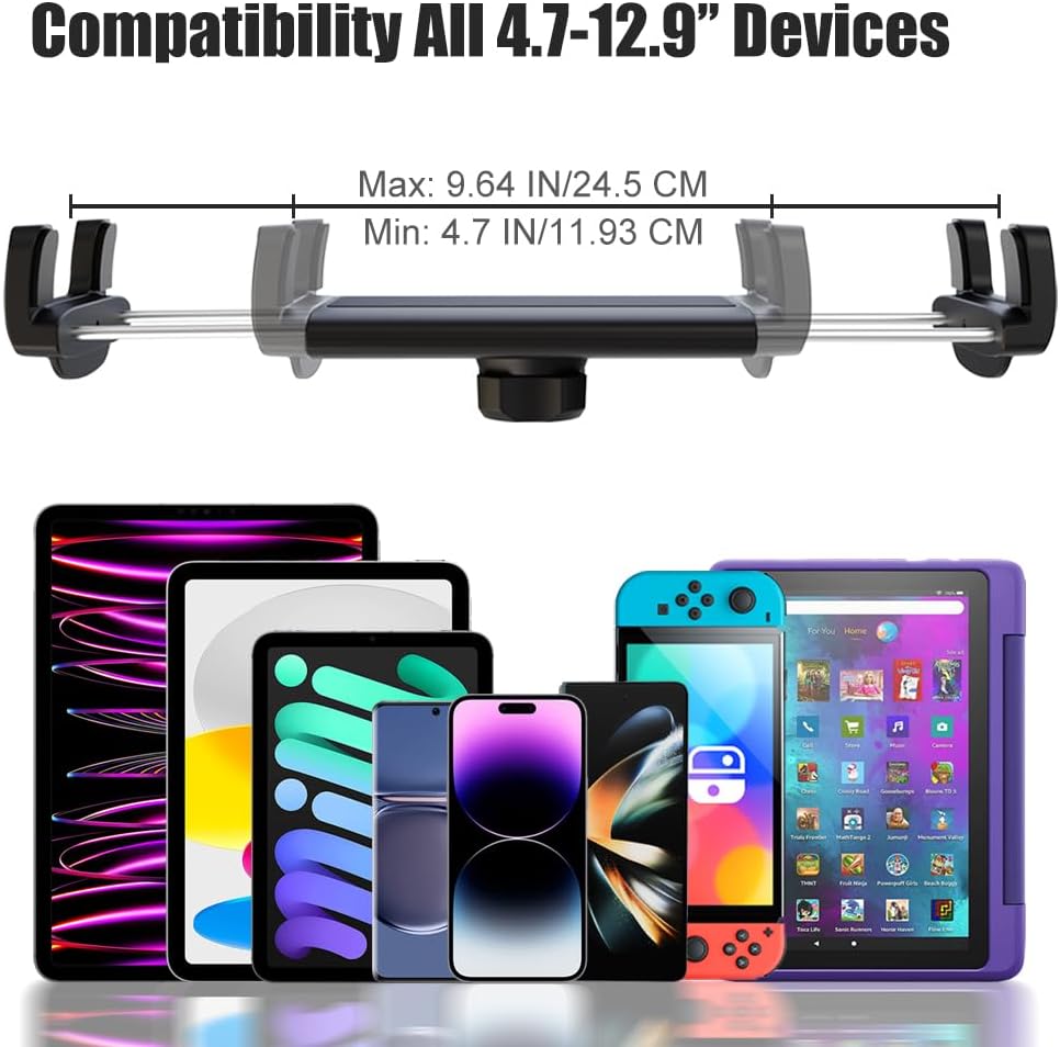 توافق واسع: حامل الكمبيوتر اللوحي Charchendo gooseneck متوافق مع جميع الأجهزة مقاس 4.7-12.9 بوصة. مقاس مشبك iPad 4.7-9.64 بوصة (11.93-24.5 سم)، السمك 0.7 بوصة (1.8 سم)، مما يجعل المشبك يعمل مع أو بدونه يمكن تثبيت الحافظة بإحكام مثل iPad Pro 12.9 بوصة، 11 بوصة، 10.5 بوصة، 9.7 بوصة، iPad Mini (5، 4، 3، 2، 1)، iPad Air (5، 4، 3، 2، 1) ، iPad (8th 7th 6th 5th)، iPad 2019، 2020، 2021؛ iPhone 14/14 Pro/14 Pro Max، 13/13 Pro/13 Pro Max، إلخ. Switch، Samsung Galaxy، Google Nexus، هواوي، إلخ.