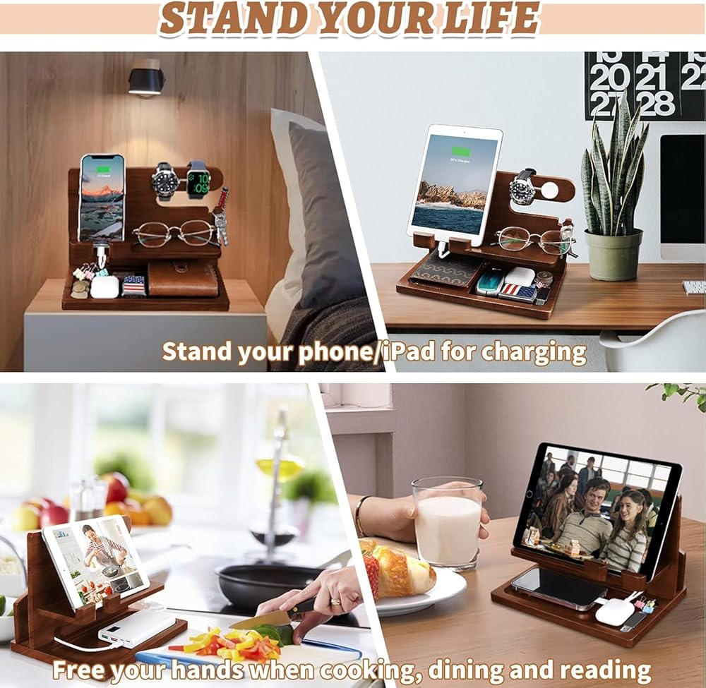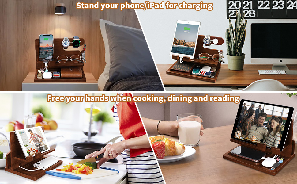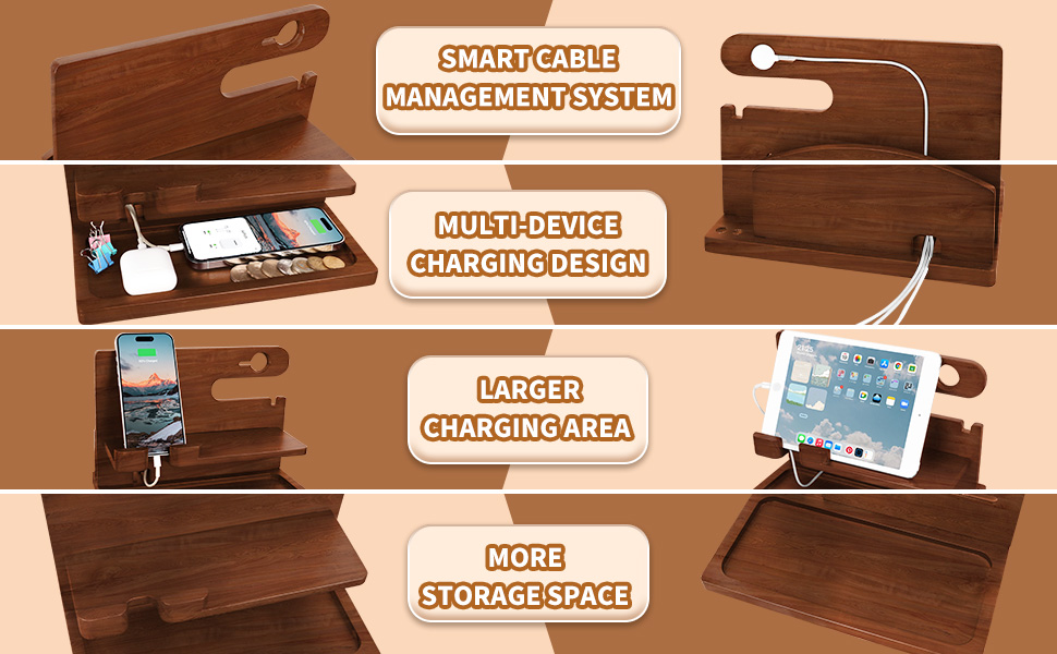 Our cell phone docking station is made of solid wood and covered with non-toxic protective finishing. Charge your phone and compatible with various smart phones.