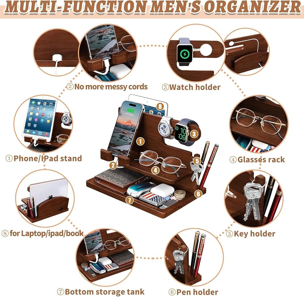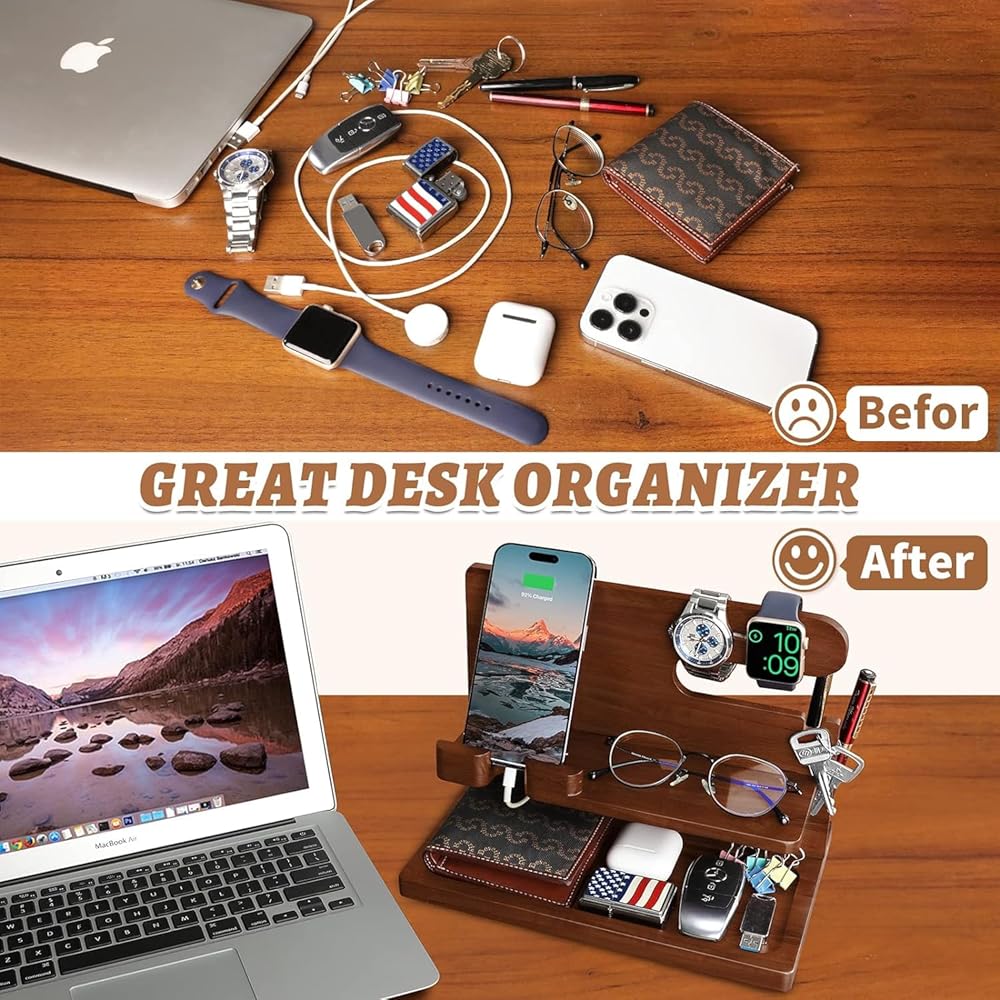 Smart Desktop Organizer - With this men's organizer, they stop littering gadgets and save them more time.It helps keep your most needed day-to-day items organized and using. All their accessories will be available at any time! And it is an elegant and stylish complement to any interior decoration.
