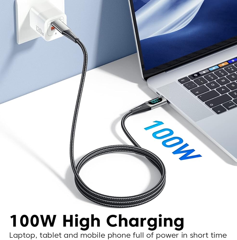 توافق واسع: يعمل كابل البيانات الخاص بنا بسهولة مع مجموعة واسعة من أجهزة USB-C، بما في ذلك الهواتف والأجهزة اللوحية وأجهزة الكمبيوتر المحمولة. وهو متوافق مع MacBook Pro 13 بوصة، MacBook Pro 15 بوصة، MacBook Air 2018، iPad Air 2020 10.9 بوصة (الجيل الرابع)، iPad Pro 12.9 بوصة/11 بوصة، Samsung Galaxy S21/S21 Ultra/S20/S20+ /S20 Ultra/Note 10/Note 10 Plus، وGoogle Pixel 2/3/3a/4 XL، وSwitch/Switch Lite، والمزيد. لتحقيق شحن سريع، يرجى التأكد من استخدام شاحن حائط USB-C بقدرة 100 واط.
