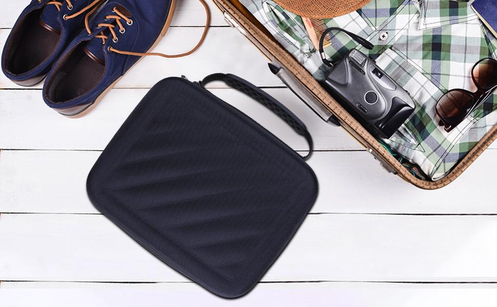 • حزام يدوي: تتميز الحافظة بمقبض مطاطي قوي يسمح بسهولة الحمل أثناء التنقل.