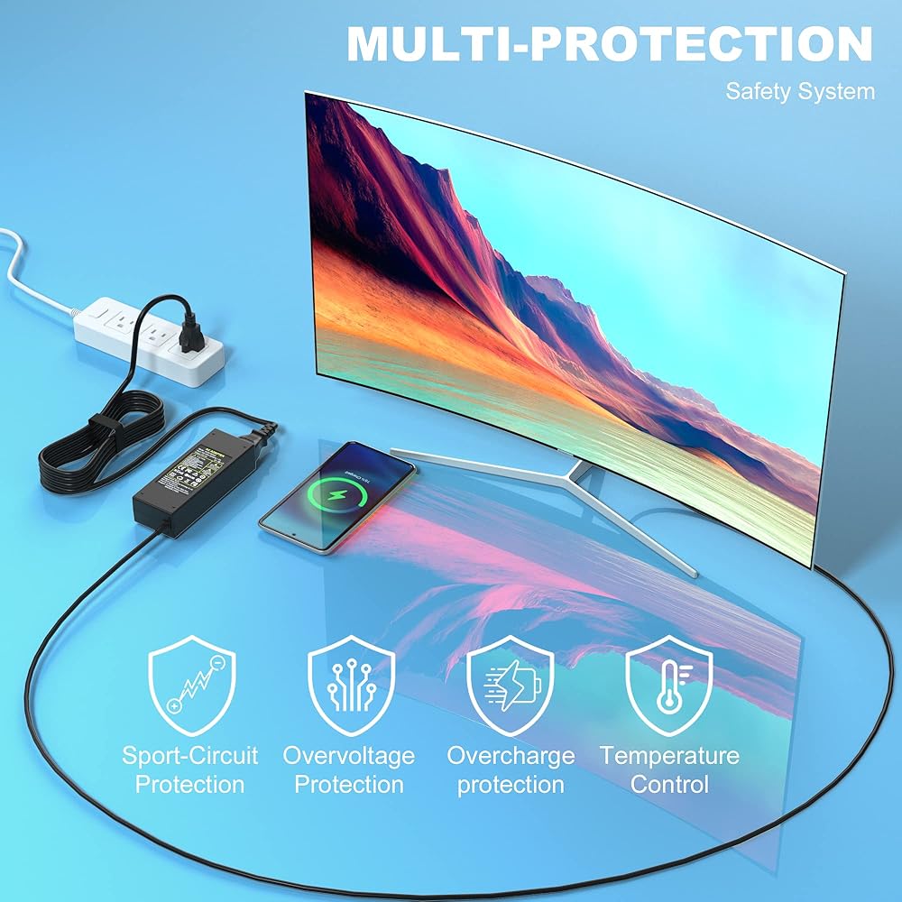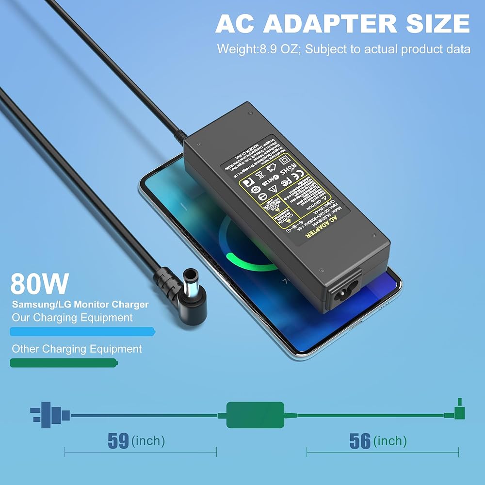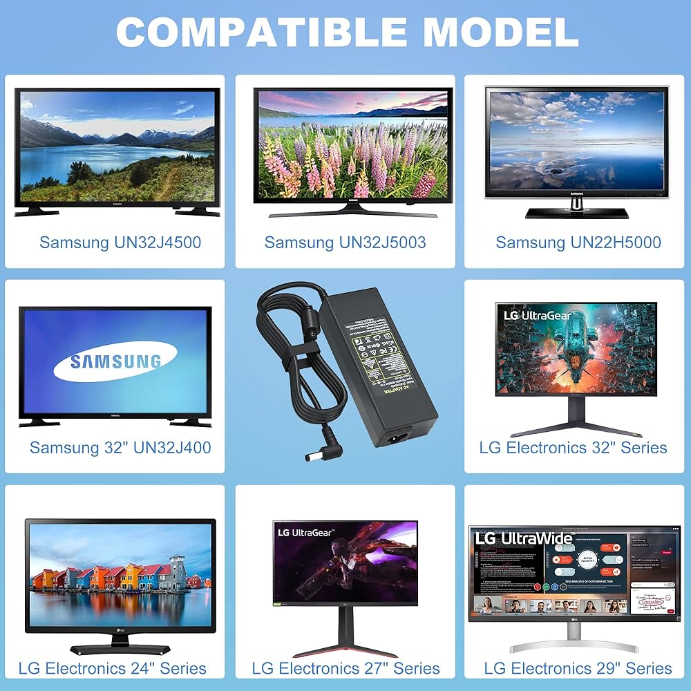 شاحن تيار مستمر 19 فولت هو الخيار الأفضل لشاشة سامسونج ال جي 19 بوصة 20 بوصة 22 بوصة 23 بوصة 24 بوصة 27 بوصة شاشة LED LCD عريضة HD. تحتوي العبوة على سلك طاقة واحد بمرونة أكبر. متوافق تمامًا مع شاشة وتلفزيون 19 فولت. يتم اجتياز كل شاحن من أجل كفاءة الطاقة (المستوى السادس) واختبار السلامة CE FCC ويلبي أعلى معايير الصناعة. قم بحماية جهازك.