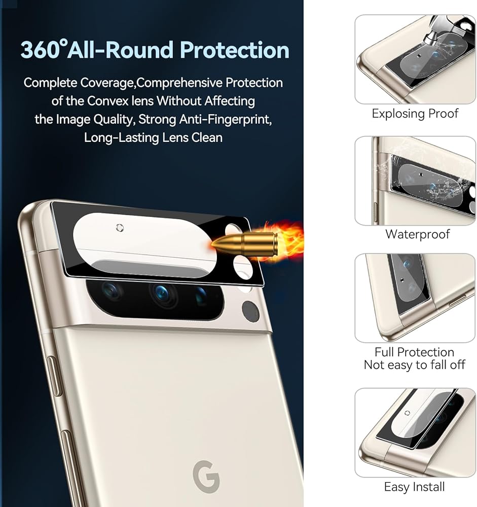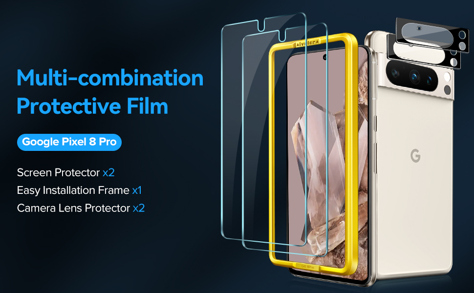 ivoler [2+2 واقي شاشة من الزجاج المقوى لهاتف Google Pixel 8 Pro [متوافق مع فتح بصمة الإصبع] مع واقي عدسة الكاميرا لهاتف Pixel 8 Pro مع تركيب إطار محاذاة وفيلم شفاف عالي الدقة