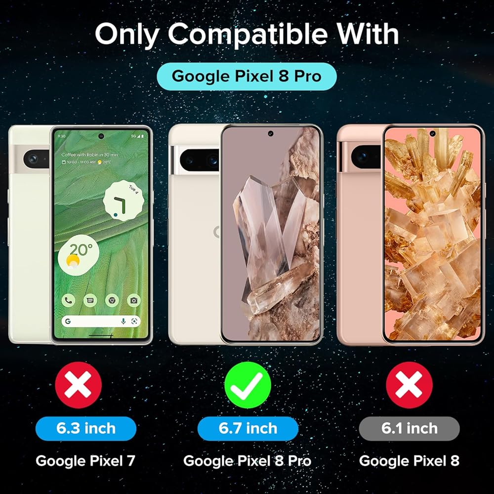 • [متوافق مع Pixel 8 pro] مصمم خصيصًا ليتوافق مع Google Pixel 8 pro 2023 الذي تم إصداره (غير مناسب لبكسل 8). واقي شاشة من الزجاج المقسى iVoler مع صلابة بمستوى 9H يحمي وإطار محاذاة سهل التركيب يحمي واقي الشاشة الخاص بك بشكل مثالي من جميع الجوانب.