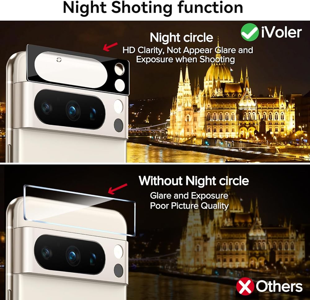 • [ترقية دائرة الفلاش الليلية] واقي شاشة عدسة الكاميرا iVoler مع ترقية "دائرة الفلاش الليلية" وزيادة وظيفة الامتصاص الكهروستاتيكي، مما يجعلك تستمتع بصورة واضحة في بيئة التصوير الليلي. يوفر واقي عدسة الكاميرا مع نفاذية الضوء بنسبة 99.99% حماية موثوقة دون التأثير على التقاط الصور وتصوير مقاطع الفيديو