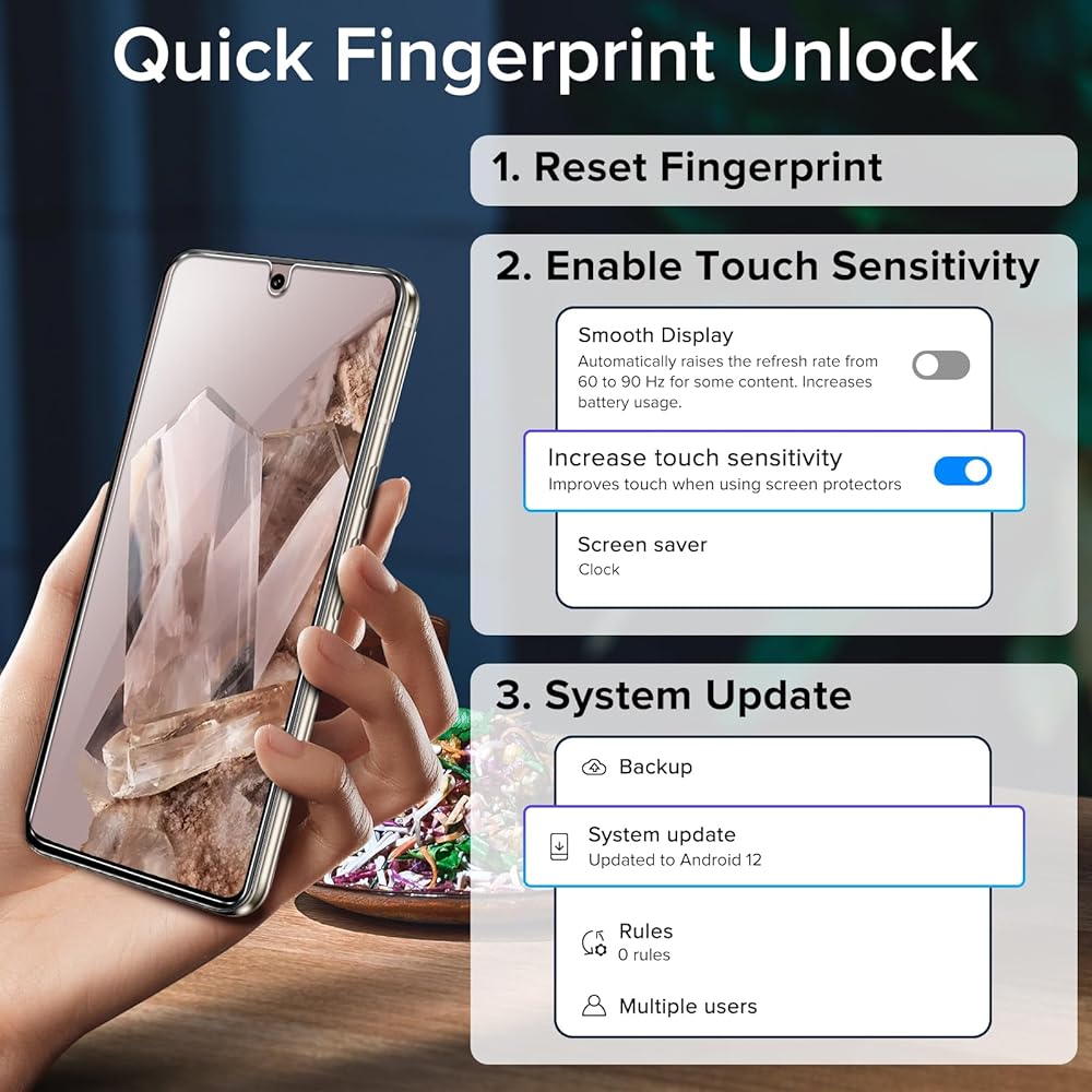 • يتميز واقي الشاشة iVoler المقوى بطبقة مضادة لبصمات الأصابع تحافظ على شاشتك خالية من بصمات الأصابع واللطخات الزيتية وضد العرق. واقي الشاشة الخاص بنا مقاوم للماء وخالي من الغبار، وسهل التنظيف ودون إزعاج استخدامك اليومي.
