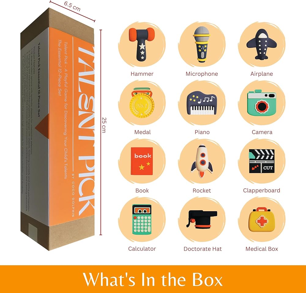 مجموعة ألعاب تعليمية: تأتي لعبة تالنت بيك مع مجموعة مبهجة من الأشياء الرمزية الكرتونية، مما يعزز اللعب الخيالي ويساعد الأطفال على تعلم المواهب والاهتمامات المختلفة.