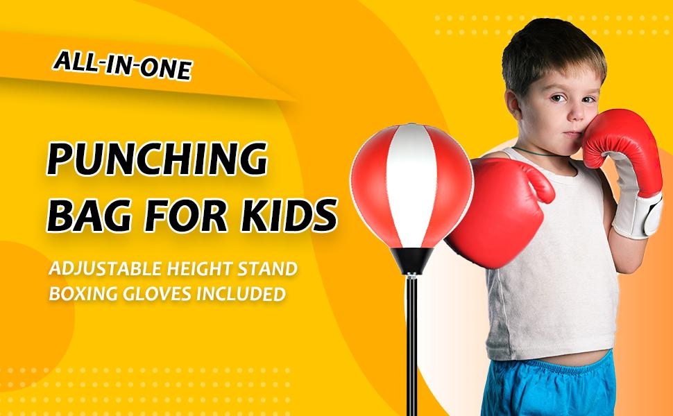 ييباي كيس ملاكمة للاطفال من سن 4 و5 و6 و7 و8 سنوات، يتضمن قفازات ملاكمة وحامل، مجموعة اكياس ملاكمة بارتفاع قابل للتعديل، هدية مثالية للكريسماس واعياد الميلاد