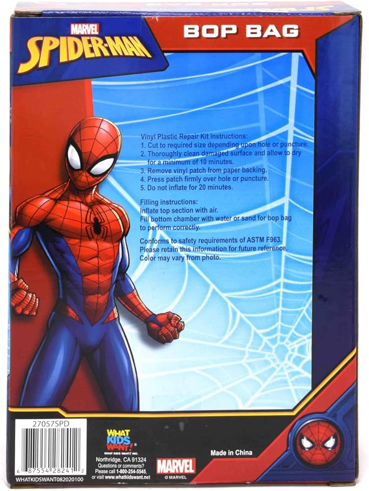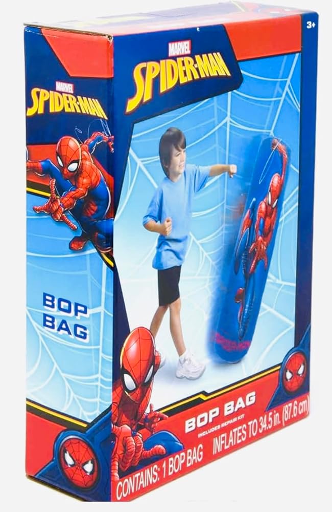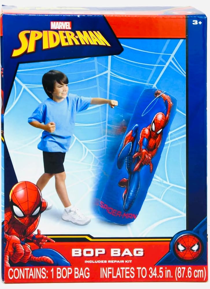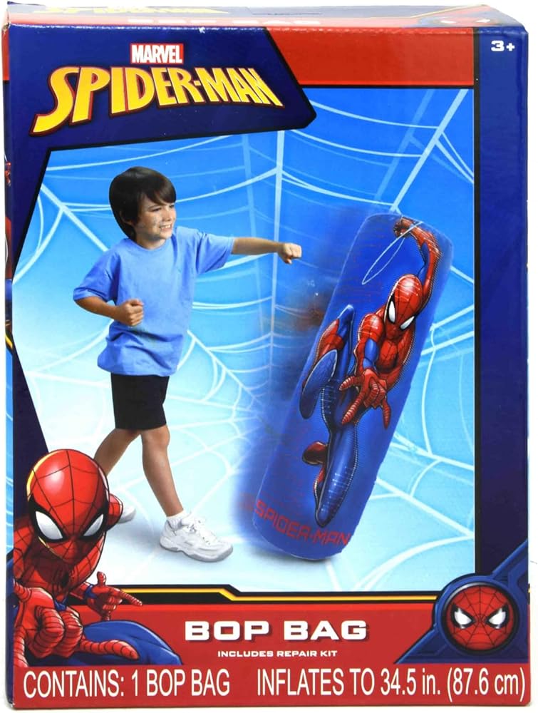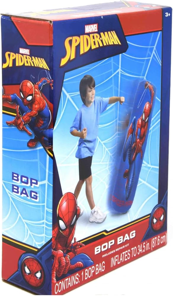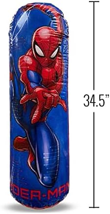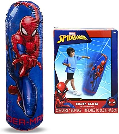 • متضمنة مع شراء كيس الملاكمة - تتضمن حقيبة ملاكمة واحدة قابلة للنفخ من سبايدر مان. تأتي المجموعة مع طقم إصلاح في حالة التمزق أو التمزق. املأ الحجرة السفلية بالرمل لتحتفظ بها في حقيبة سبايدر مان في وضع مستقيم. يبلغ مقاس كيس اللكم بوب حوالي 34.5 سم عند نفخه بالكامل.