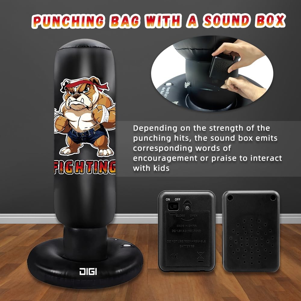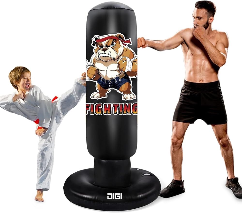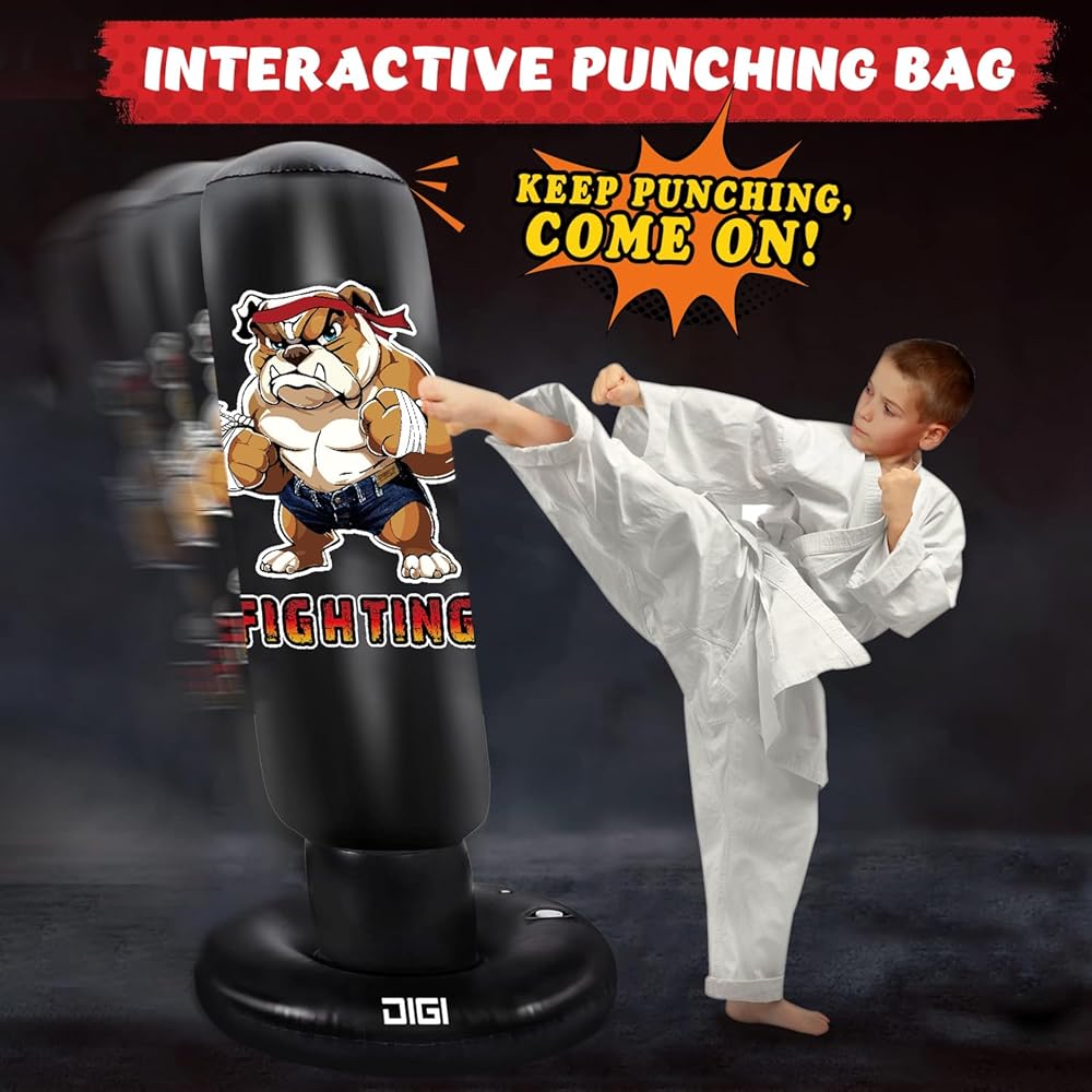 كيس ملاكمة للأطفال في سن المراهقة والكبار - كيس ملاكمة كبير جدًا قابل للنفخ مع حامل - ألعاب الكاراتيه هدايا لعيد الميلاد وعيد الميلاد للأولاد الذين تتراوح أعمارهم بين 4 5 6 7 8 9 10 12+