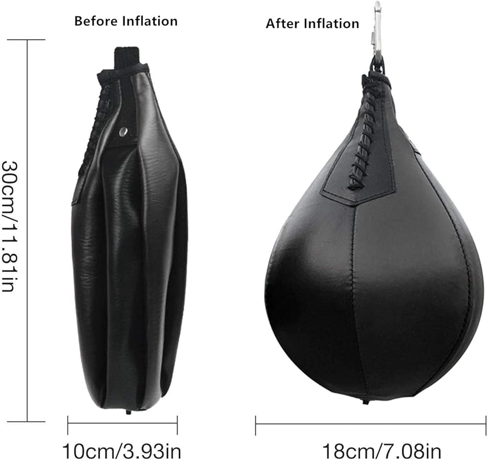 • 【سهلة الاستخدام】حقيبة سرعة مثالية للملاكمة، وهي مناسبة للرجال والنساء والمراهقين والأطفال، وحتى مدربي الملاكمة. يأتي مع خطاف معدني متين لسهولة التعليق. مع مرور الوقت، ستبدأ حقيبة التسريع في الانكماش بشكل طبيعي، ويحتاج العميل فقط إلى ملؤها بالهواء.