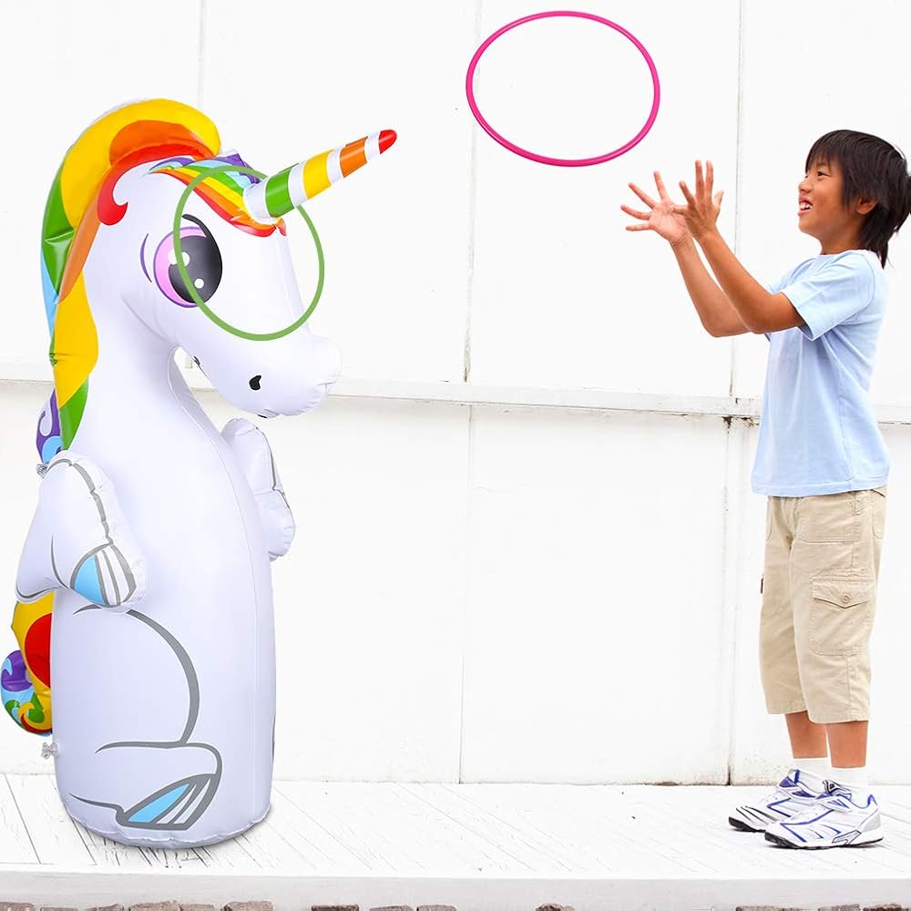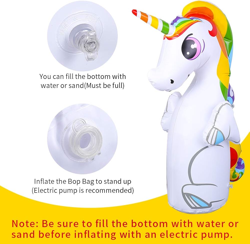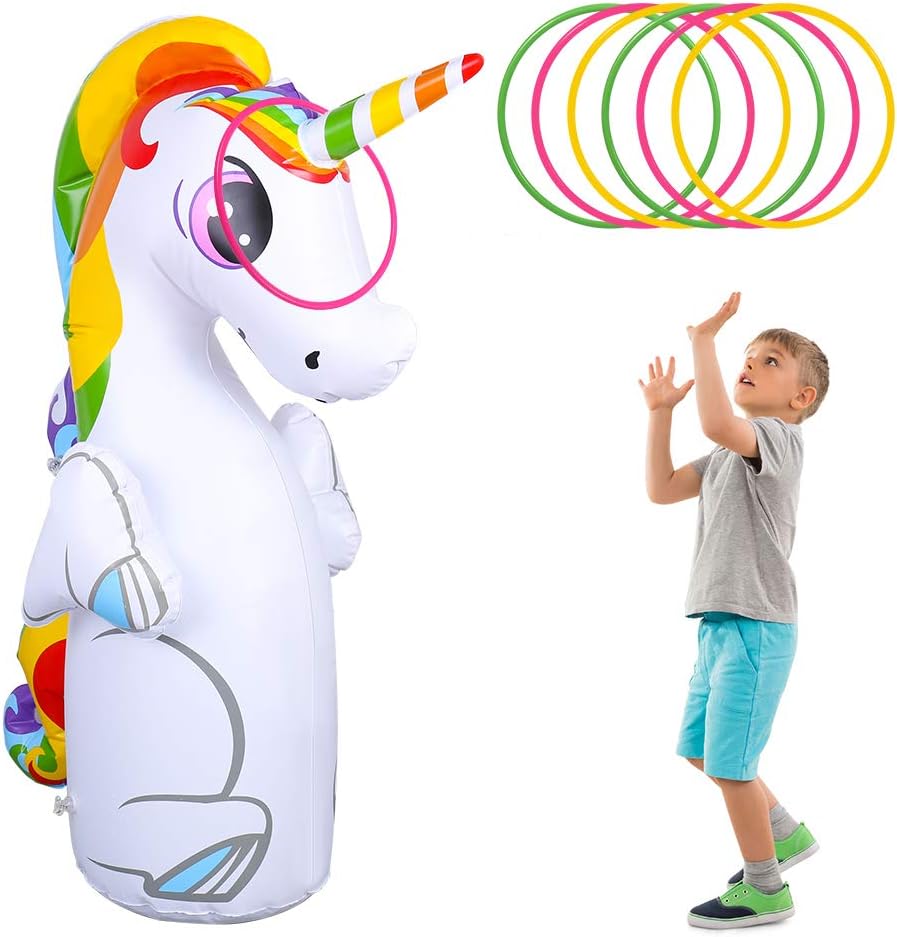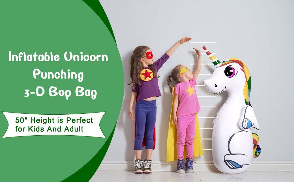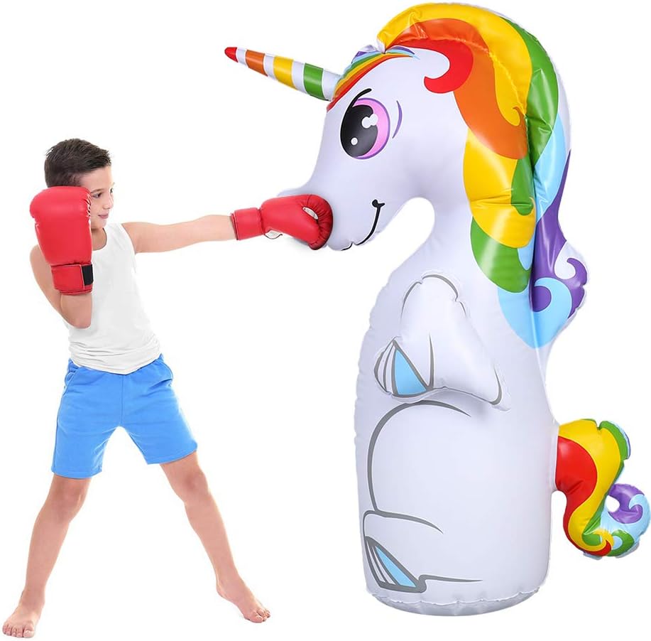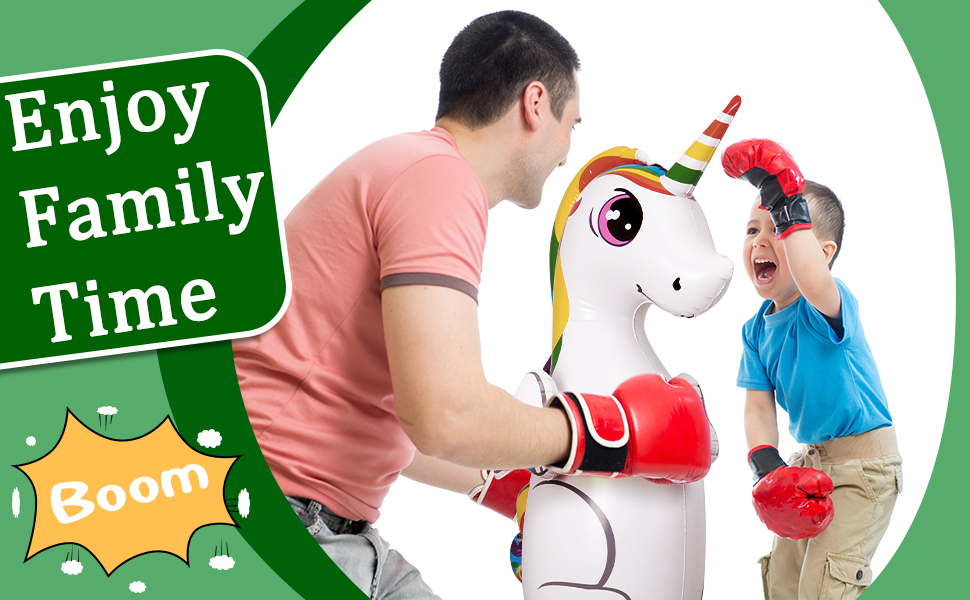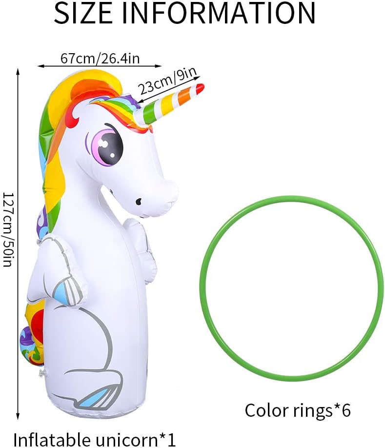 【6 حلقات رمي】 - تأتي حقيبة الملاكمة بتصميم يونيكورن مع 6 حلقات رمي مجانية. يمكنك وضع حلقات الرمي على قرن اليونيكورن.