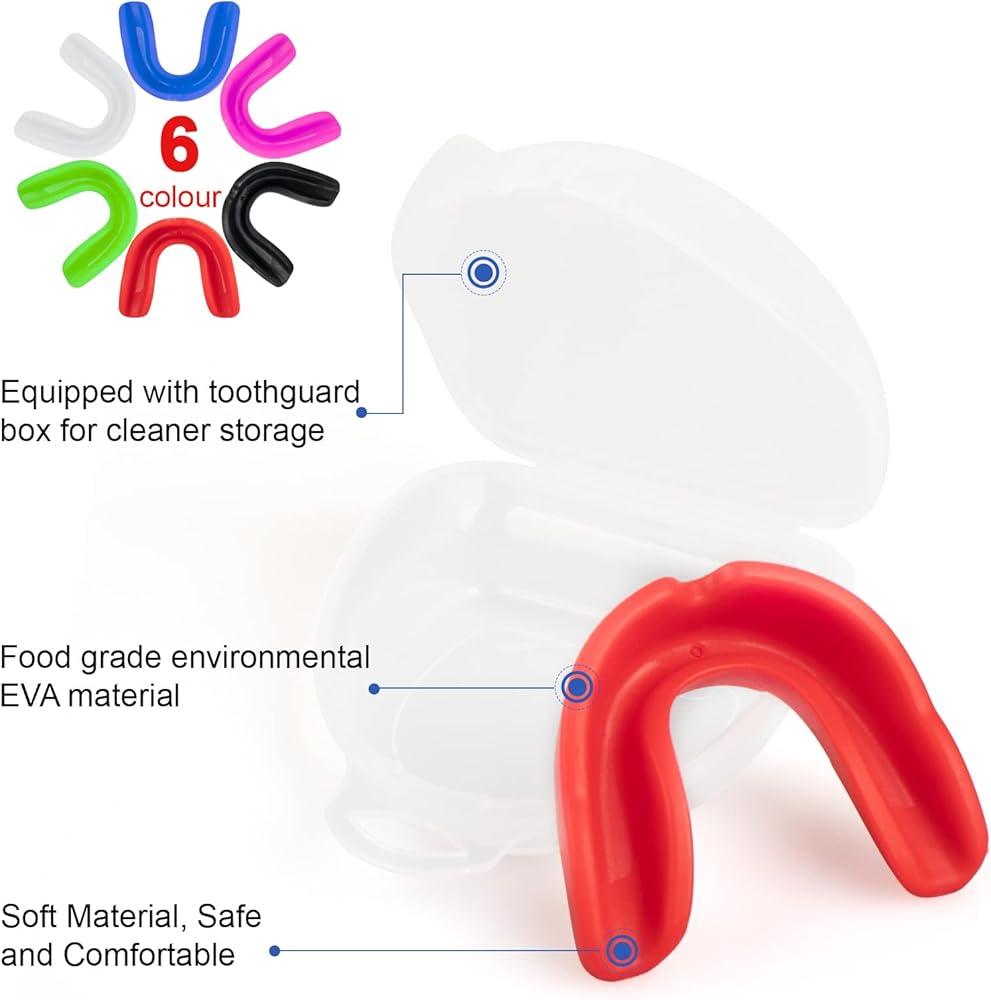 • 【محتويات العبوة】 سوف تحصل على 6 قطع من واقيات الفم الرياضية بألوان مختلفة لتلبية الكمية ومتطلبات الألوان، يأتي كل واقي فم رياضي مع حقيبة لوضع عليها، فهو مريح للغاية.