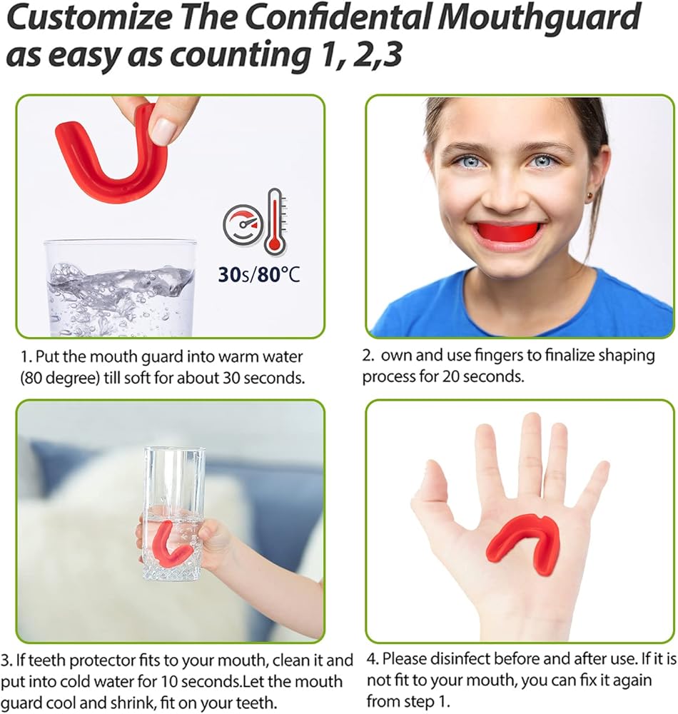• 【كيفية الاستخدام】انقعيها في ماء ساخن حوالي 80 درجة لتنعيمها، ثم ضعيها في الفم، واغسلها وتجفيفها بالماء البارد بعد الاستخدام، وضعها في صندوق، يتم تطبيقها لحماية الأسنان في مختلف المسابقات والتدريبات.